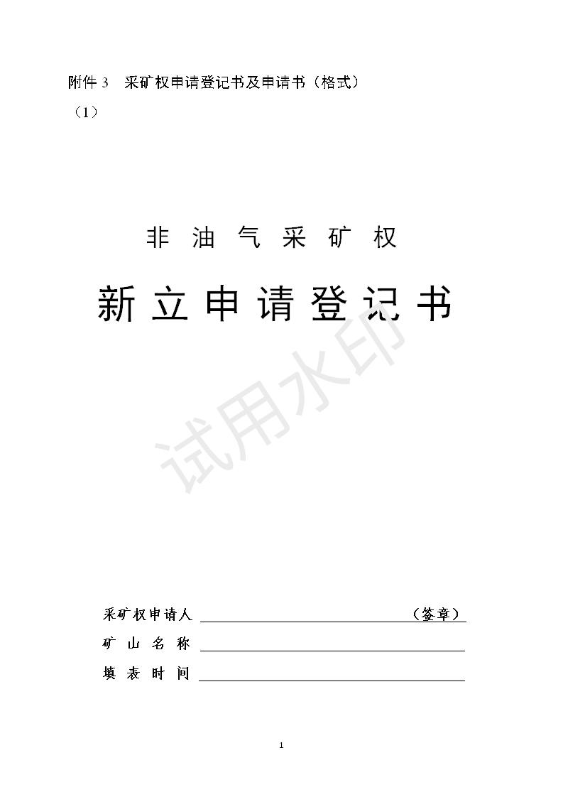 非油氣采礦權新立申請登記書模板下載