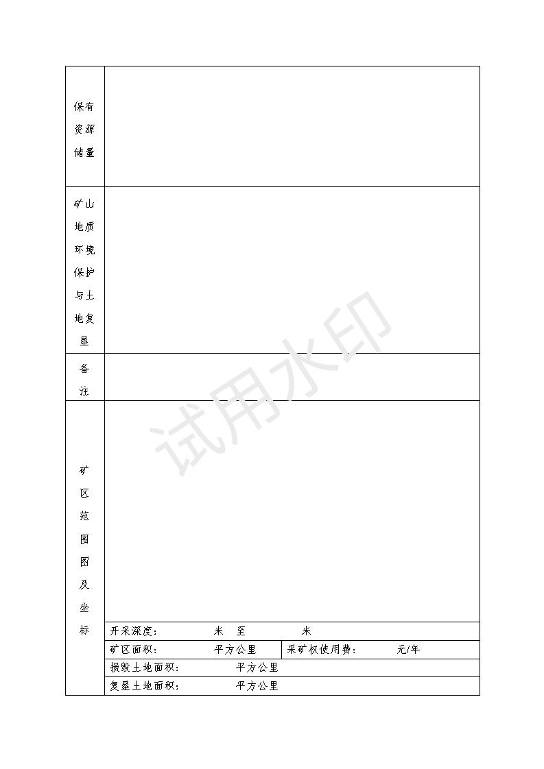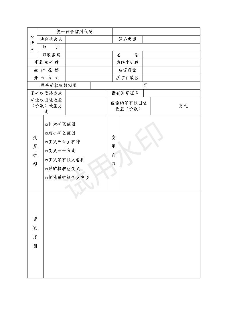 非油氣采礦權(quán)變更申請(qǐng)登記書模板下載