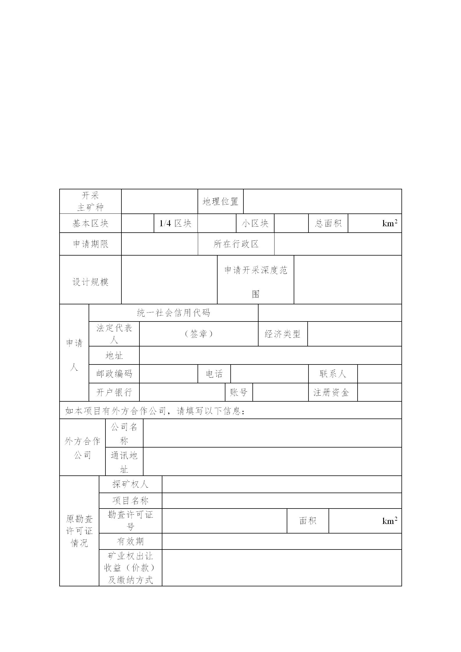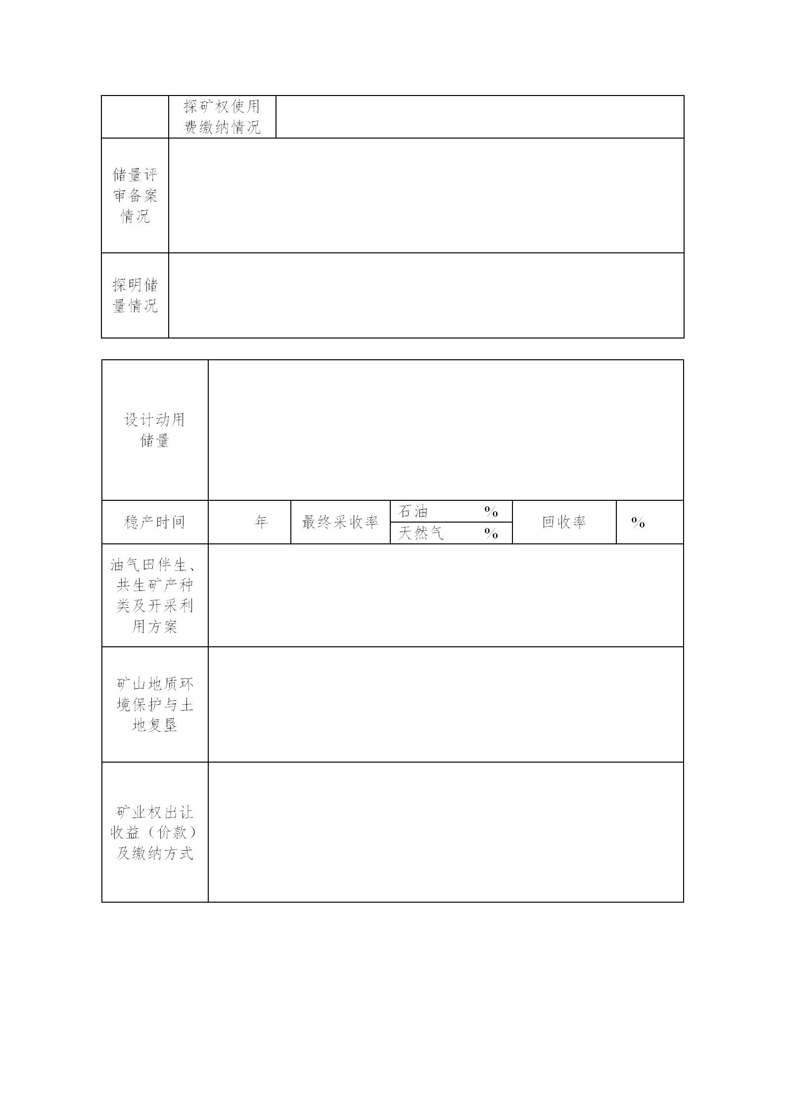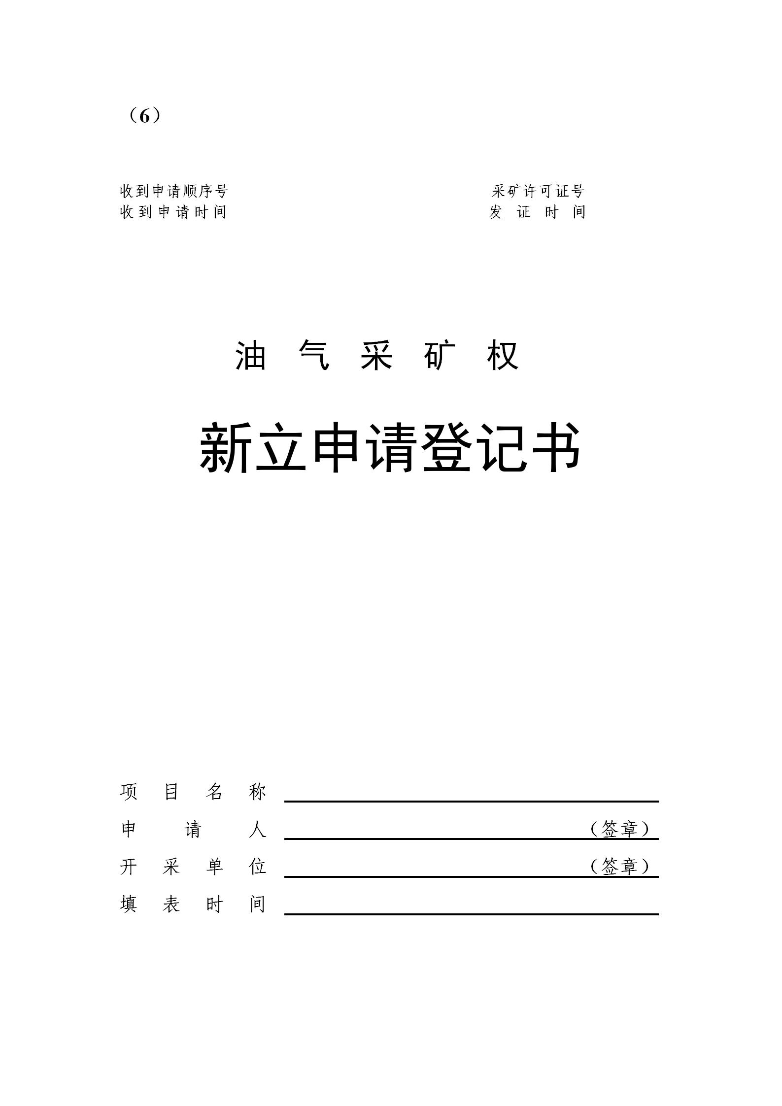 油氣采礦權(quán)新立申請登記書模板下載
