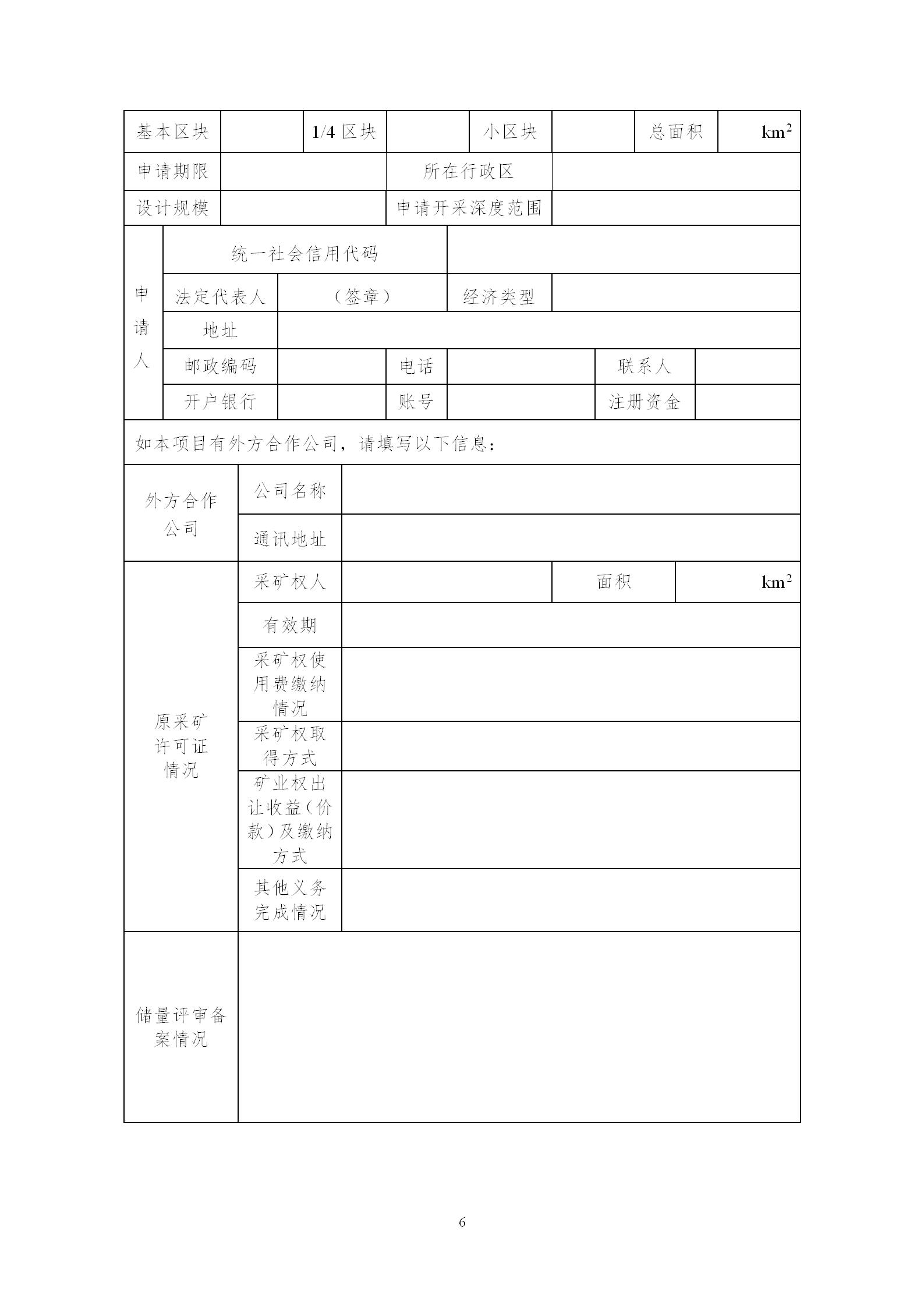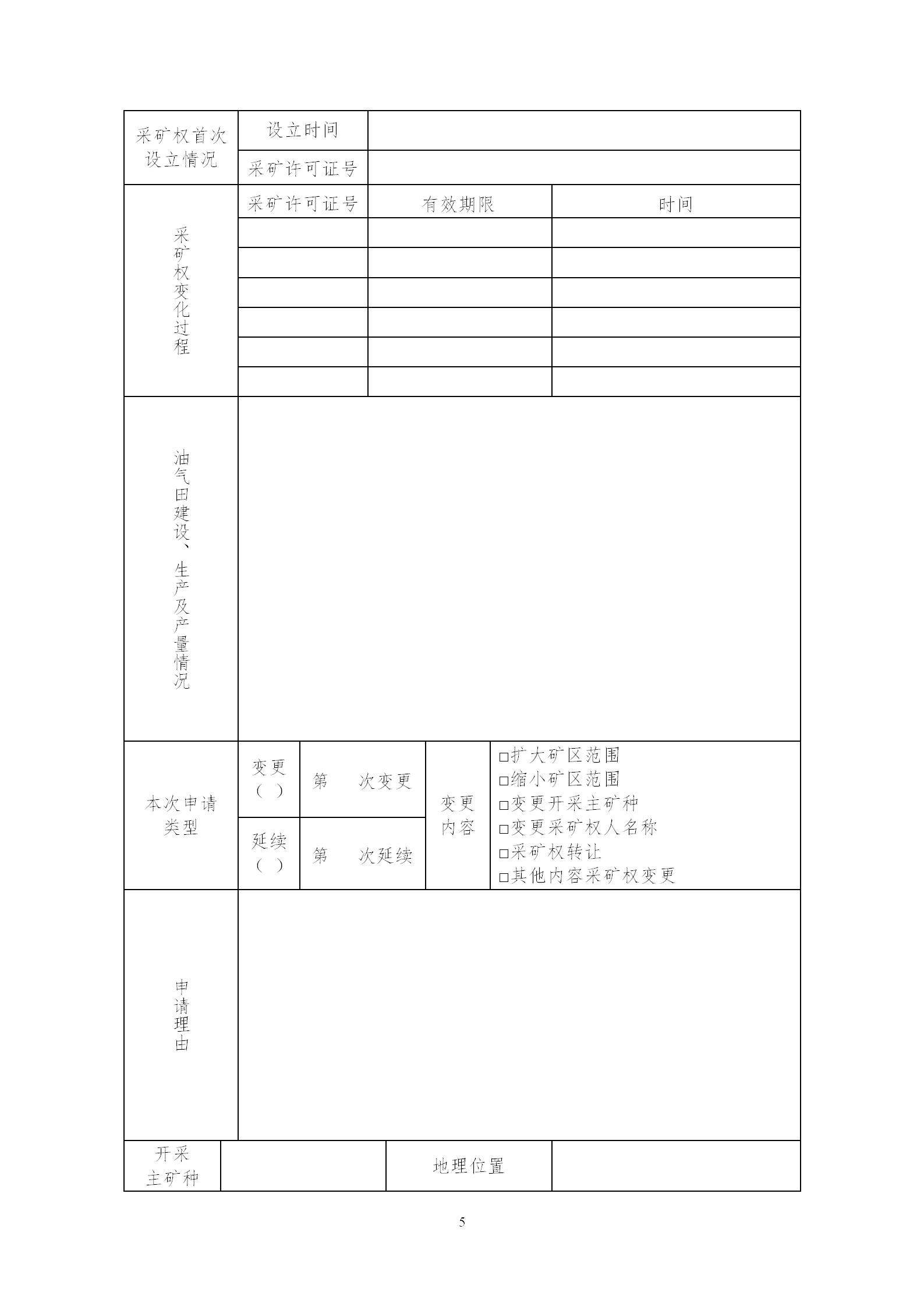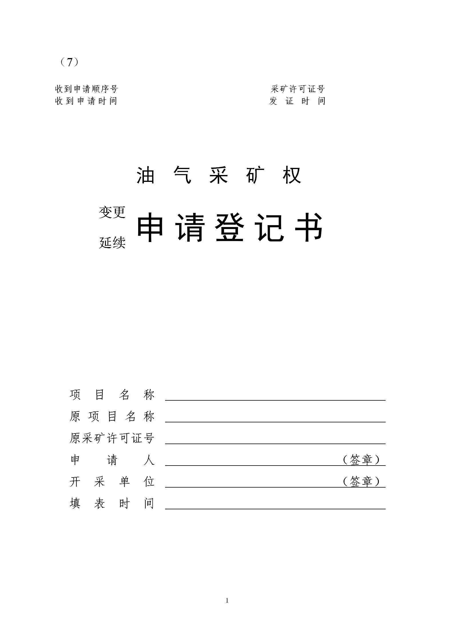 油氣采礦權(quán)變更延續(xù)申請登記書模板下載