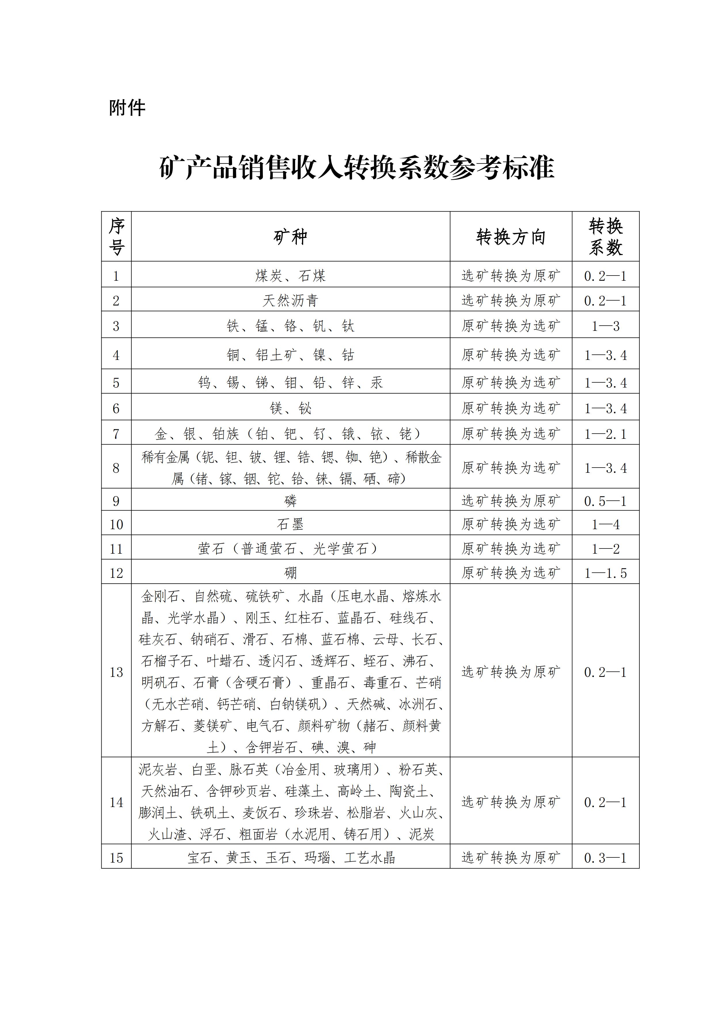 礦產(chǎn)品銷售收入轉(zhuǎn)換系數(shù)參考標(biāo)準(zhǔn)