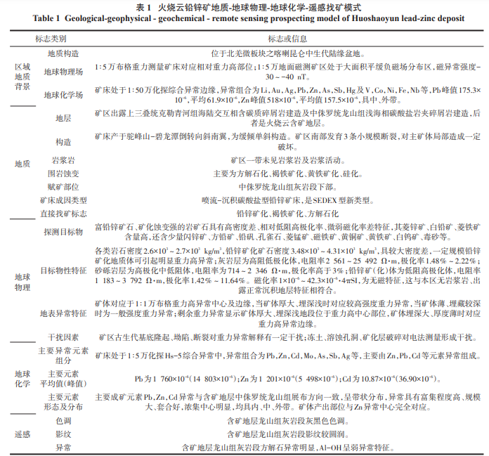 綜合有關(guān)研究成果,建立了火燒云鉛鋅礦綜合找礦模式(表1)。