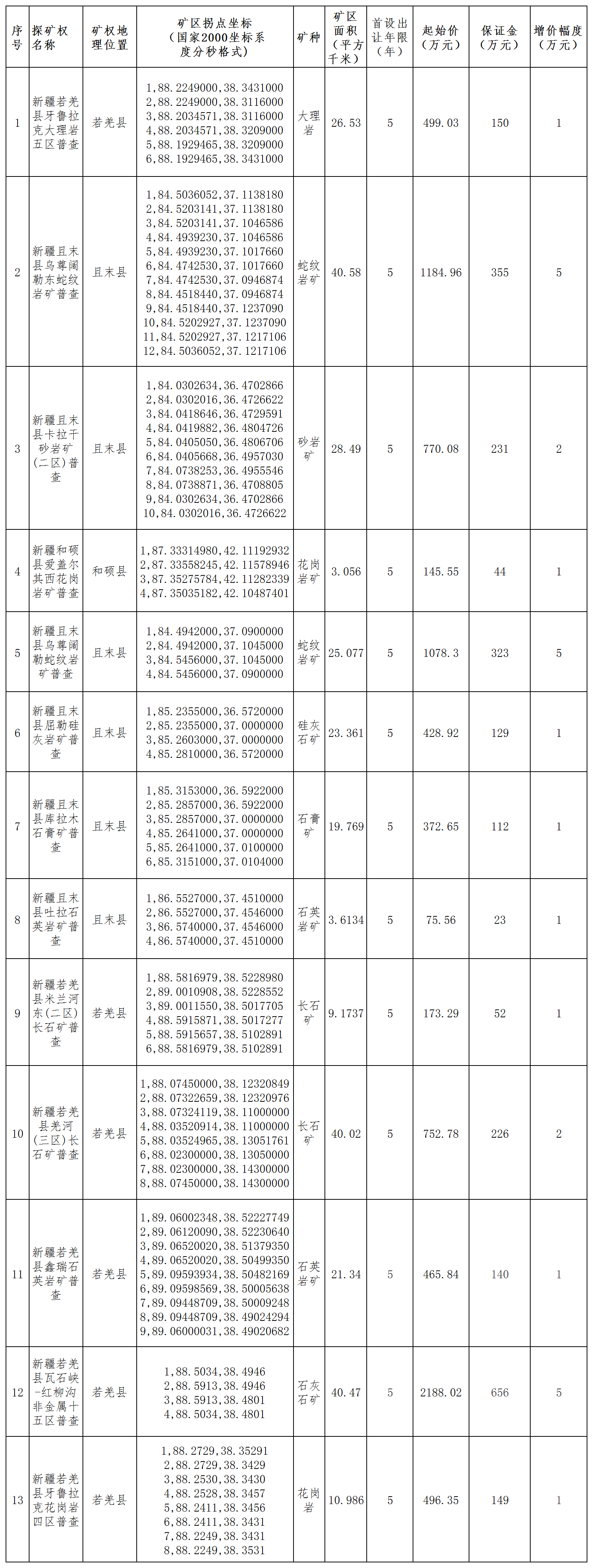 注:最終成交的探礦權(quán)范圍拐點(diǎn)坐標(biāo)以與巴州自然資源局簽訂出讓合同中確定的探礦權(quán)范圍拐點(diǎn)