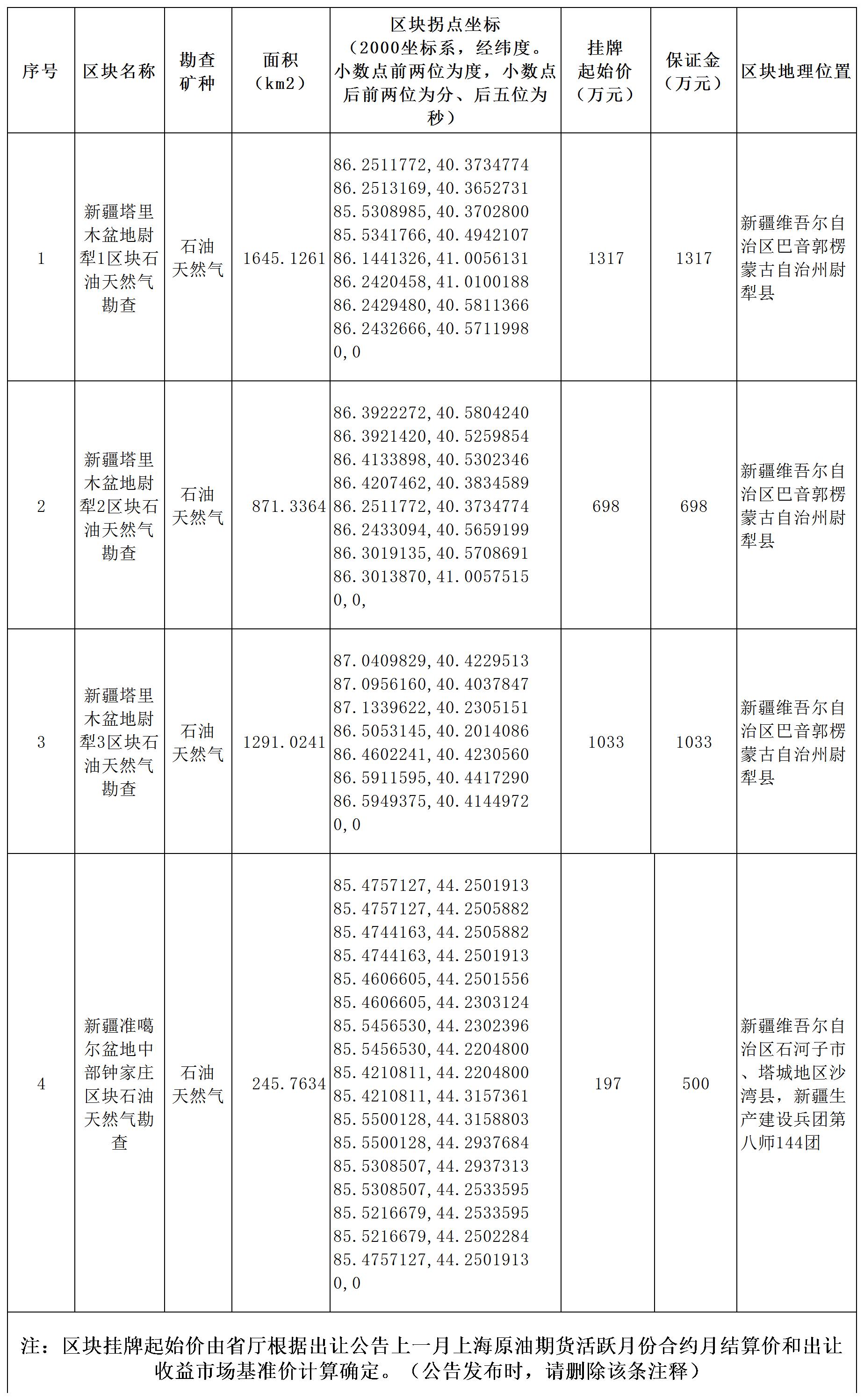 4.出讓區(qū)塊面積、拐點(diǎn)坐標(biāo)、掛牌起始價(jià)等基本情況見附件1。
