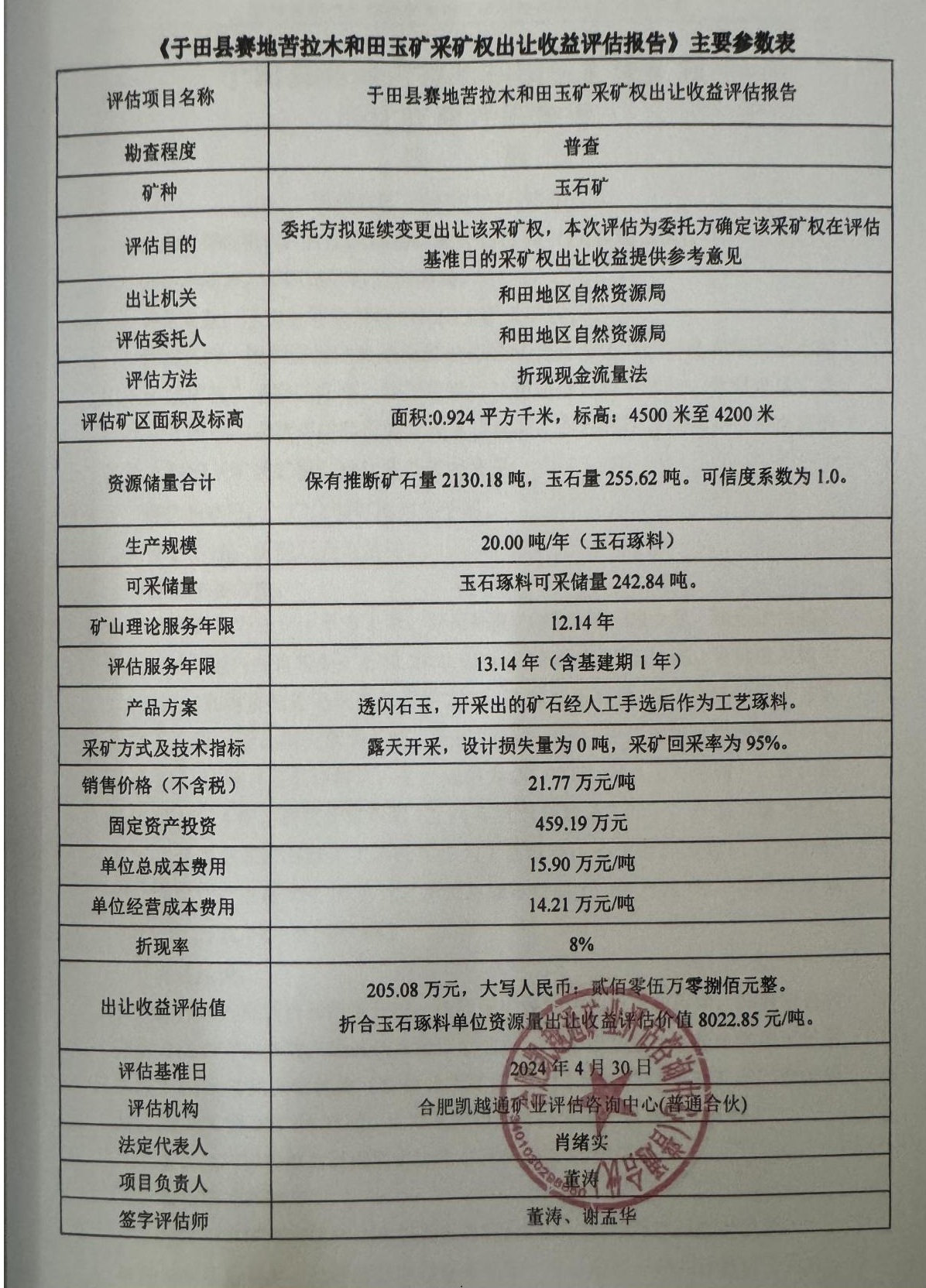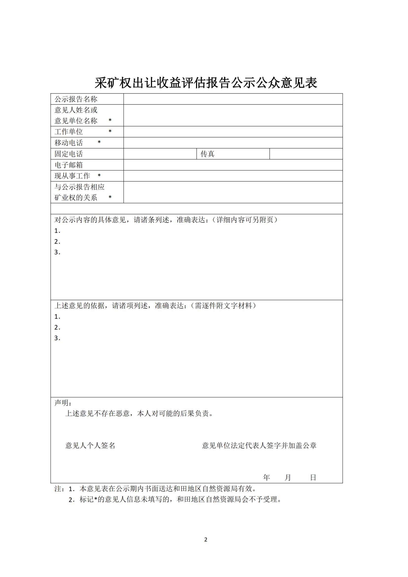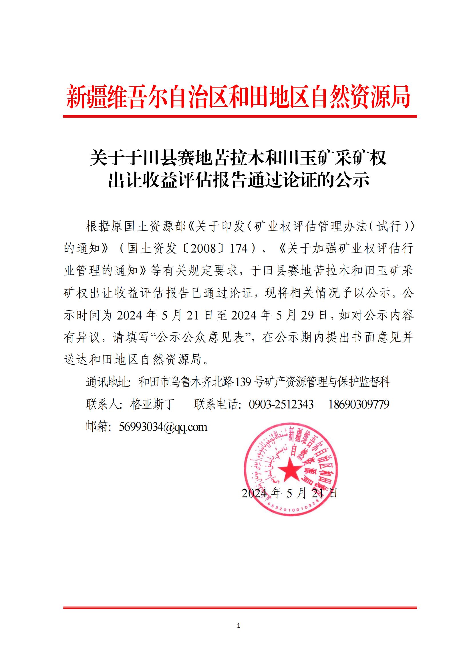 關(guān)于于田縣賽地苦拉木和田玉礦采礦權(quán)出讓收益評估報告通過論證的公示