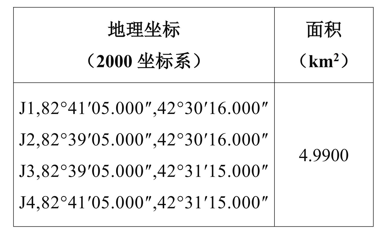 出讓礦區(qū)范圍拐點(diǎn)坐標(biāo)(CGCS2000坐標(biāo)系):礦區(qū)范圍由4個(gè)拐點(diǎn)圈定,其拐點(diǎn)坐標(biāo)見下表: