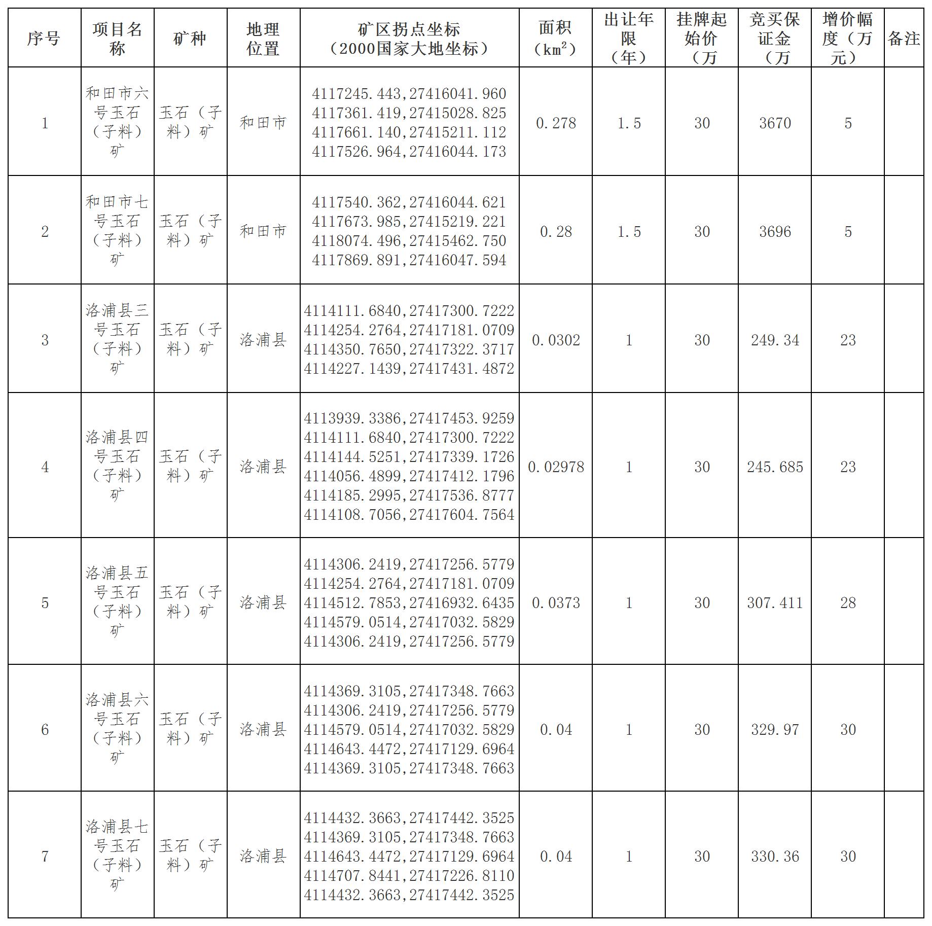 依據(jù)《中華人民共和國礦產(chǎn)資源法》《礦業(yè)權(quán)出讓交易規(guī)則》《新疆維吾爾自治區(qū)礦產(chǎn)資源管理若干事項暫行辦法》(新自然資規(guī)〔2021〕1號)以及《和田地區(qū)玉石資源管理暫行辦法》(和行辦規(guī)〔2023〕3號)等有關(guān)法律法規(guī)的規(guī)定,經(jīng)和田地區(qū)資源管理委員會批準,受和田地區(qū)自然資源局的委托,和田地區(qū)行政服務(wù)和公共資源交易中心組織以下采礦權(quán)以掛牌方式公開出讓活動,現(xiàn)將有關(guān)事宜公告如下: