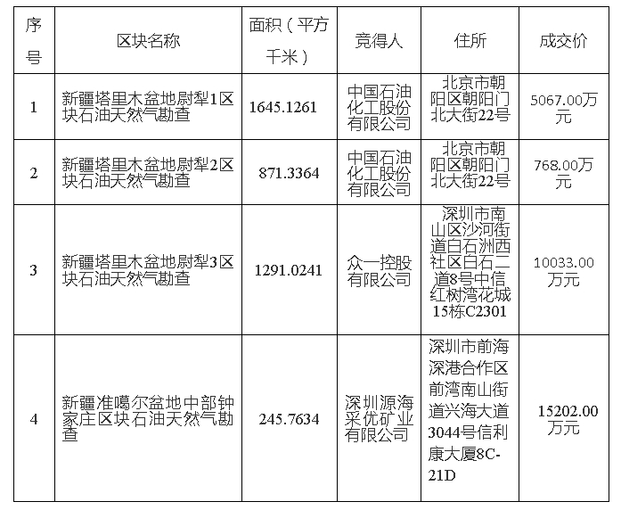 自然資源部組織新疆維吾爾自治區(qū)自然資源廳實施2024年新疆塔里木盆地尉犁1等4個石油天然氣探礦權(quán)掛牌出讓,由新疆維吾爾自治區(qū)政務服務和公共資源交易中心具體承辦?,F(xiàn)將出讓結(jié)果公示如下:
