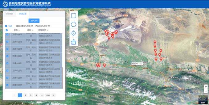 為規(guī)范全疆自然地理實體地名標準化應用,向社會大眾提供全面準確的查詢服務,根據(jù)自治區(qū)自然資源廳工作要求,自治區(qū)測繪成果中心以1:5萬基礎地理信息數(shù)據(jù)庫為基礎,梳理全疆自然地理實體地名,建立全疆自然地理實體地名數(shù)據(jù)庫,經(jīng)自治區(qū)民政部門核實確認,在“天地圖·新疆”發(fā)布上線。