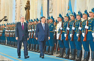 托卡耶夫為習近平舉行隆重歡迎儀式。