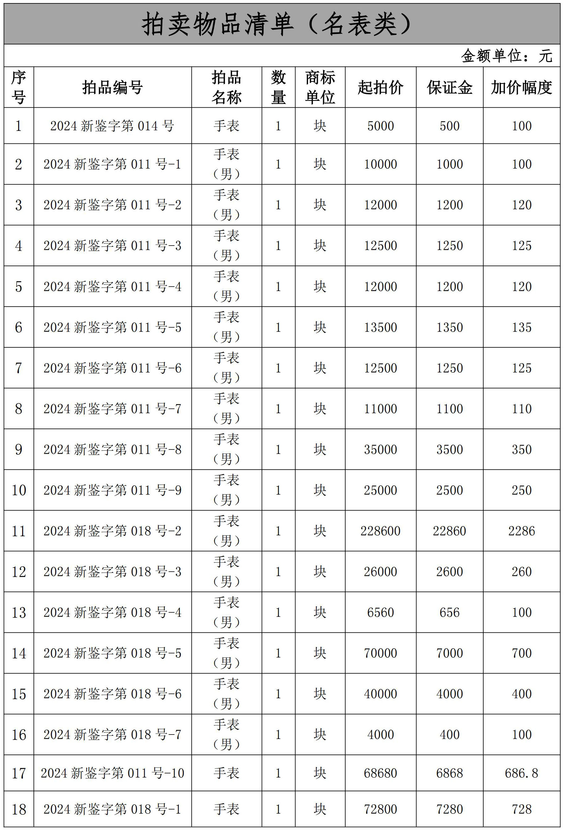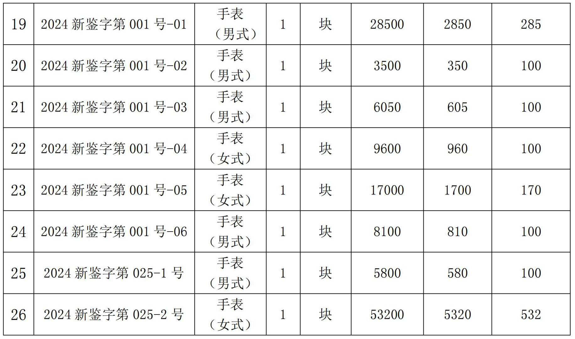 一、拍賣標的:一批名表。(詳見拍賣目錄,26件)