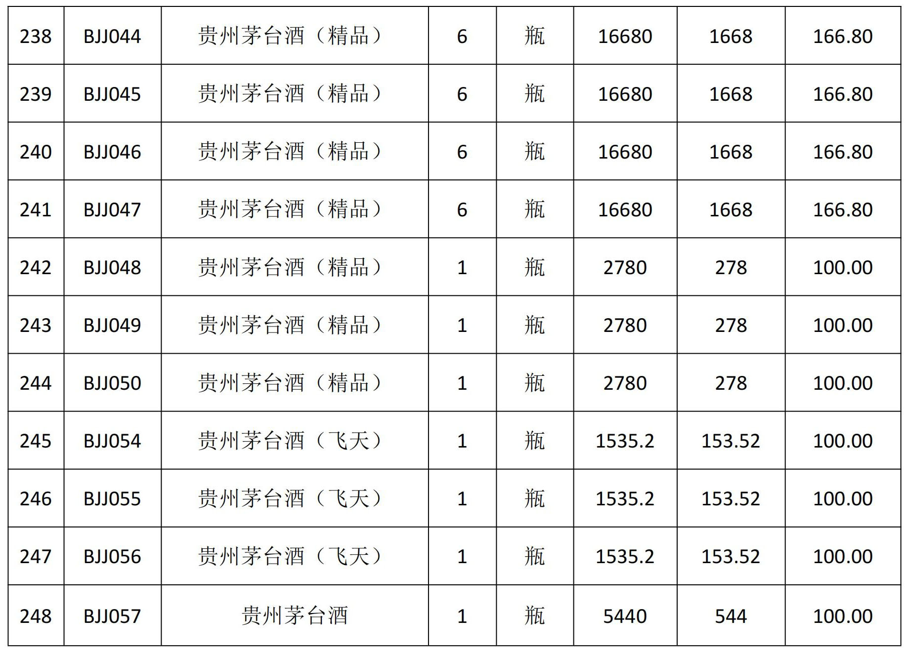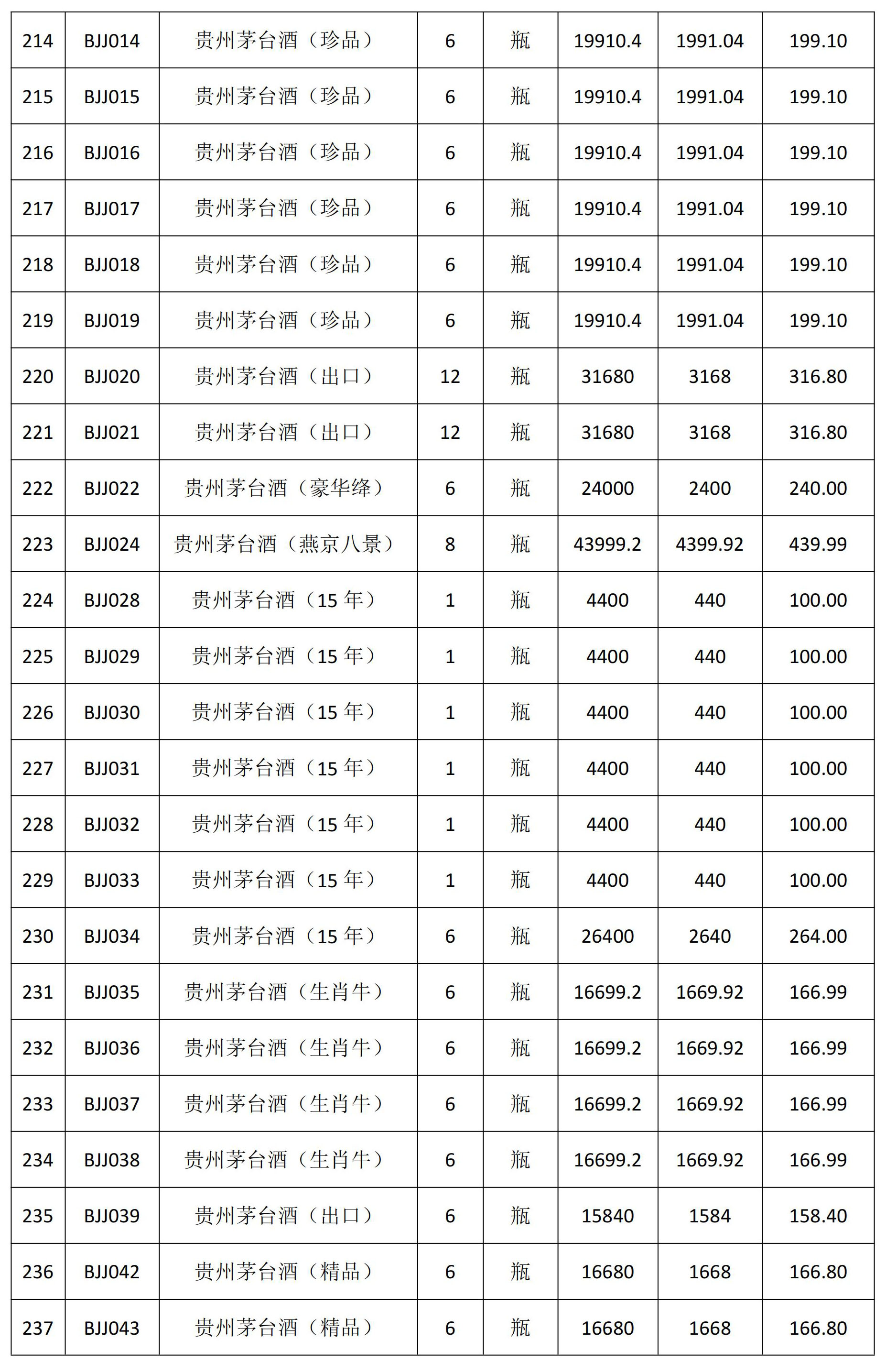一、拍賣(mài)標(biāo)的:一批茅臺(tái)系列白酒。(詳見(jiàn)拍賣(mài)物品清單,248件)