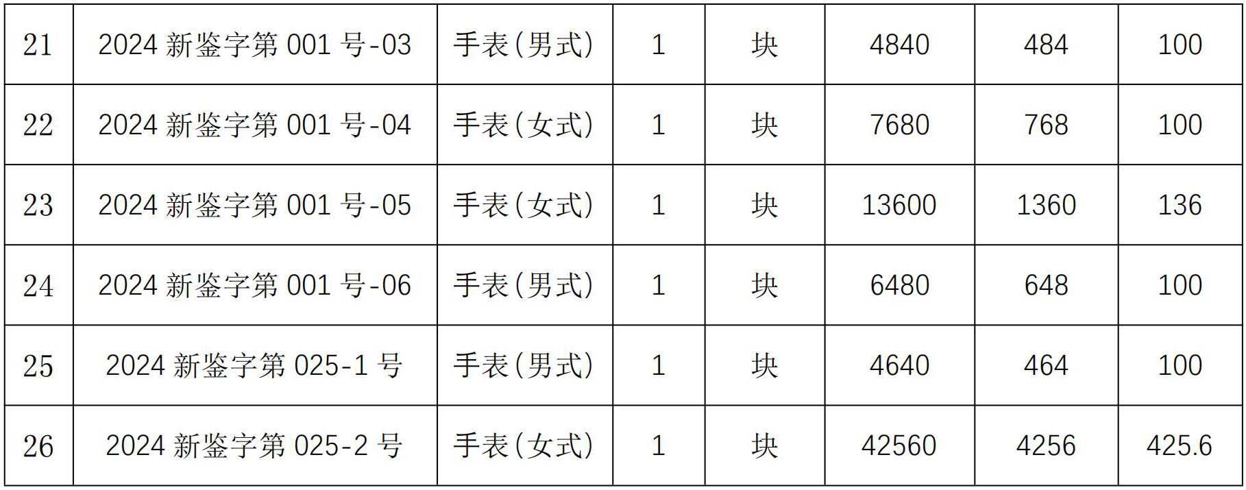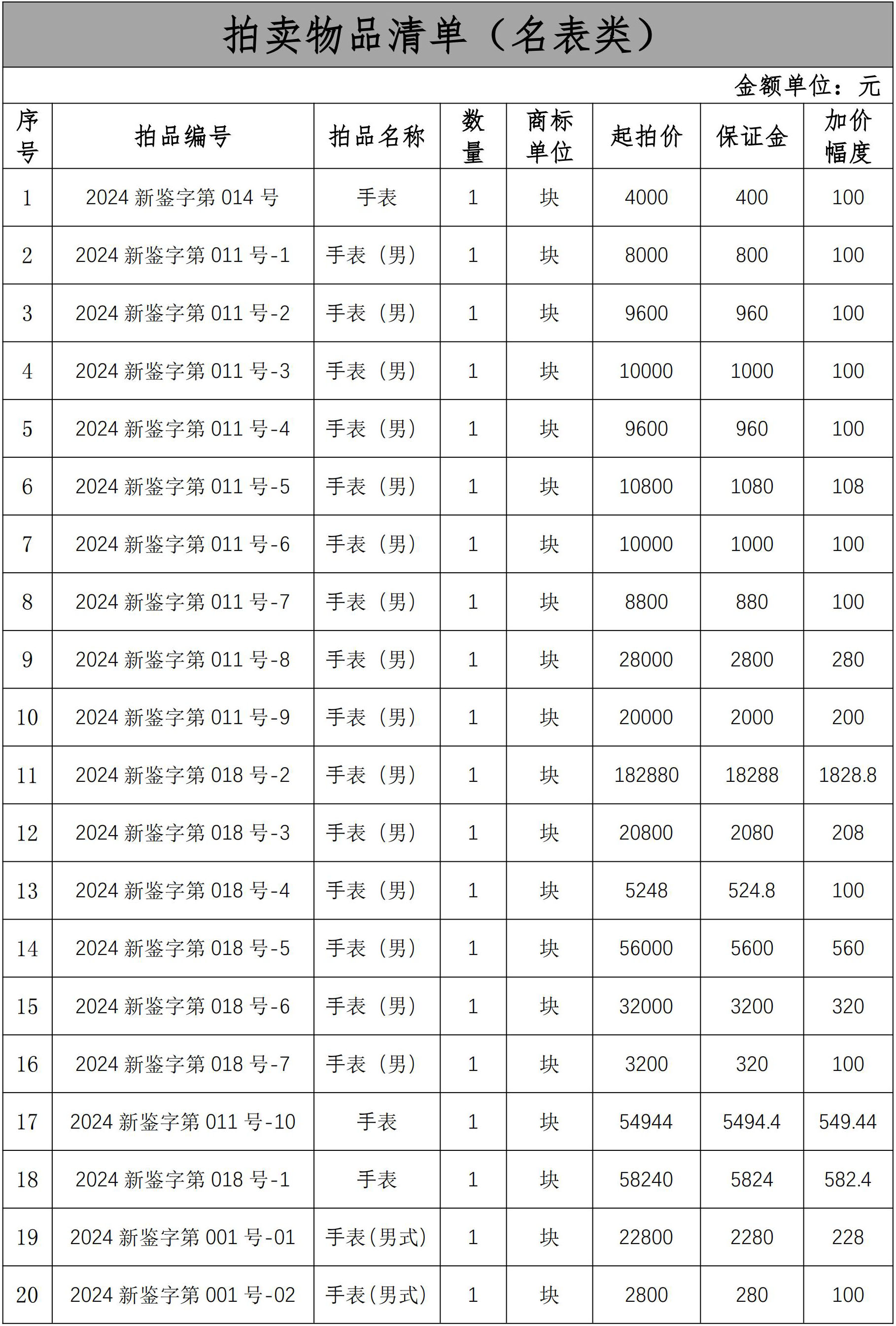一、拍賣標(biāo)的:一批名表。(詳見拍賣物品清單,26件)