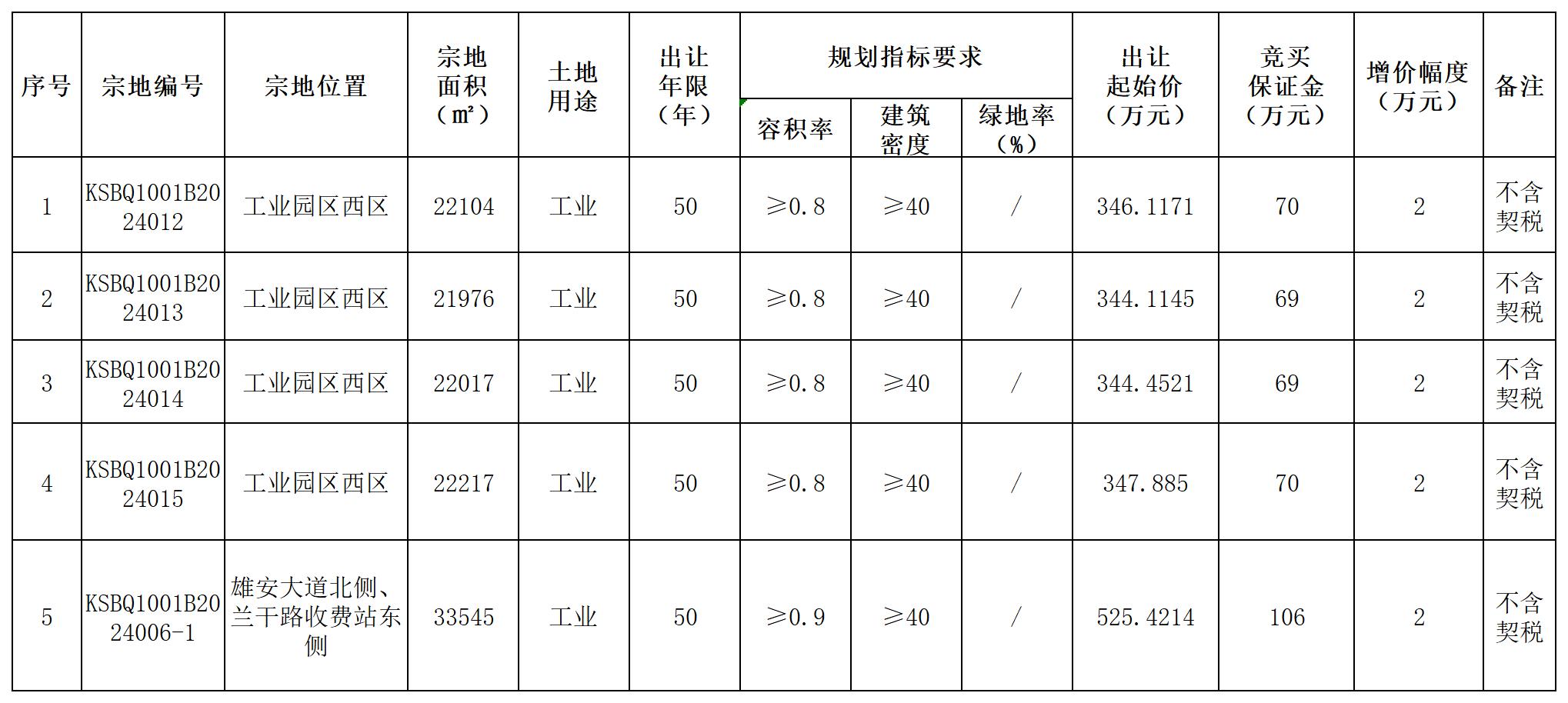 備注:根據(jù)《關于貫徹落實〈新疆維吾爾自治區(qū)關于促進民營經(jīng)濟發(fā)展壯大的若干政策措施〉的責任分解方案》,有市場需求的工業(yè)項目,可實行“帶項目”招標拍賣掛牌供應。1、KSBQ1001B2024012號,KSBQ1001B2024013號、KSBQ1001B2024014號、KSBQ1001B2024015號4宗地需一并競買且滿足以下要求:第一,該地塊需從事智慧化5G倉儲物流設施建設,并邀約國內外頭部的物流科技類企業(yè)參與設計及規(guī)劃,物流設施設備符合5G智慧物流建設標準。第二,該地塊建設完成后需邀約世界500強且為國內外行業(yè)頭部的商貿物流企業(yè)參與招商運營工作。第三,該地塊需當年建設當年投入運營。第四,該地塊建設需配備自動分揀矩陣、AGV貨到人、密集存儲立庫等智能物流硬件設施,WMS、5G智慧安防、5G智能園區(qū)等軟件系統(tǒng)。