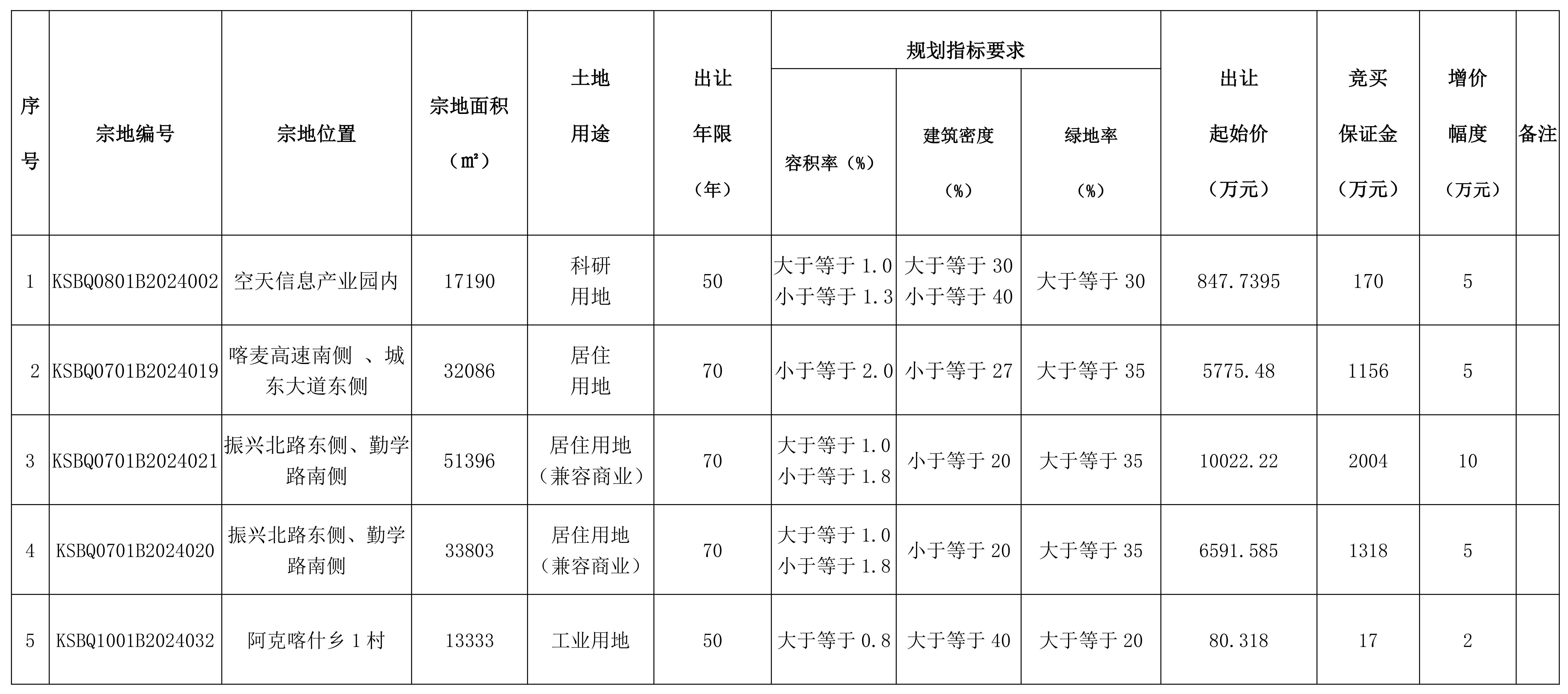 備注 :根據(jù)《關(guān)于貫徹落實(shí)〈新疆維吾爾自治區(qū)關(guān)于促進(jìn)民營(yíng)經(jīng)濟(jì)發(fā)展壯大的若干政策措施〉的責(zé)任分解方案》第40條,有市場(chǎng)需求的工業(yè)項(xiàng)目,可實(shí)行“帶項(xiàng)目”招標(biāo)拍賣掛牌供應(yīng)。KSBQ1001B2024032號(hào)地?cái)M建設(shè)用于農(nóng)業(yè)環(huán)保節(jié)水材料及殘膜回收再利用項(xiàng)目建設(shè)。