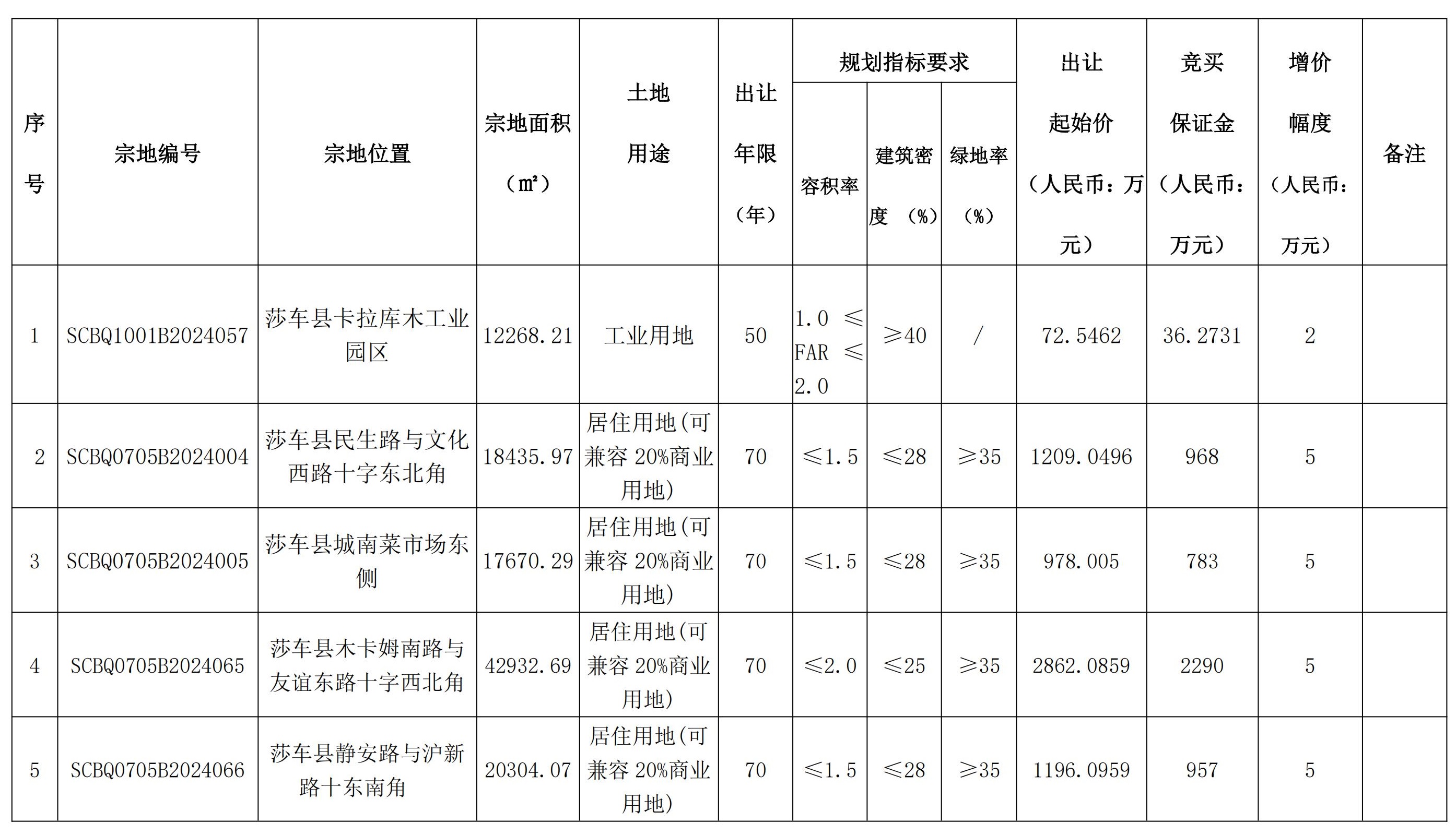 根據(jù)《中華人民共和國土地管理法》、《招標拍賣掛牌出讓國有建設用地使用權規(guī)定》(國土資源部令第39號)、《自治區(qū)深化公共資源交易平臺整合共享工作方案〉的通知》(新政辦函〔2019〕250號)等有關法律法規(guī)及文件的規(guī)定,經(jīng)莎車縣人民政府批準,莎車縣自然資源局決定以掛牌方式出讓5(幅)地塊的國有建設用地使用權。并委托新疆國源土地礦產(chǎn)資源交易中心、新疆國正拍賣有限公司、新疆公信拍賣有限公司組織實施。現(xiàn)將有關事項公告如下: