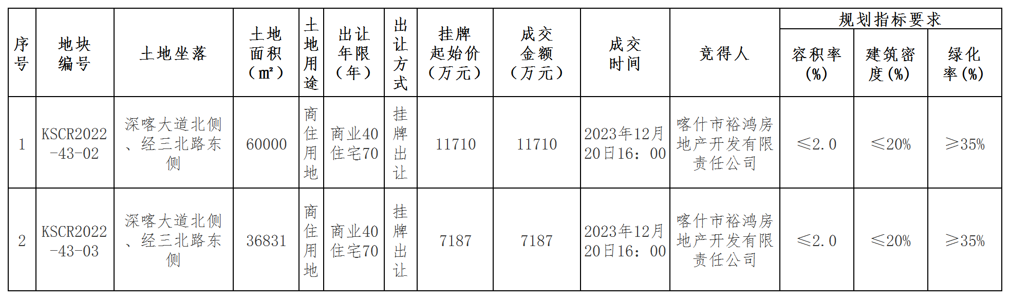 喀什市國有建設用地使用權成交結果公示(喀市自然成交公示[2023]05)