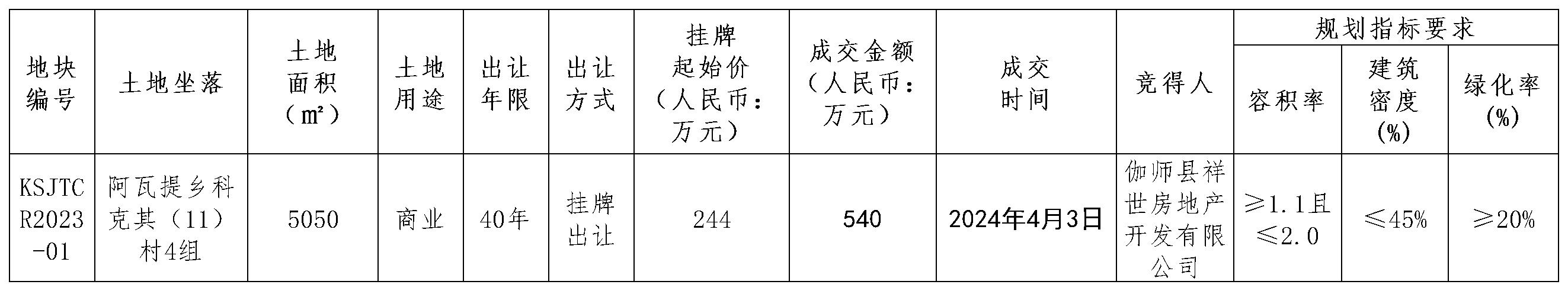 喀什市農(nóng)村集體經(jīng)營性建設(shè)用地使用權(quán)掛牌出讓成交結(jié)果公示