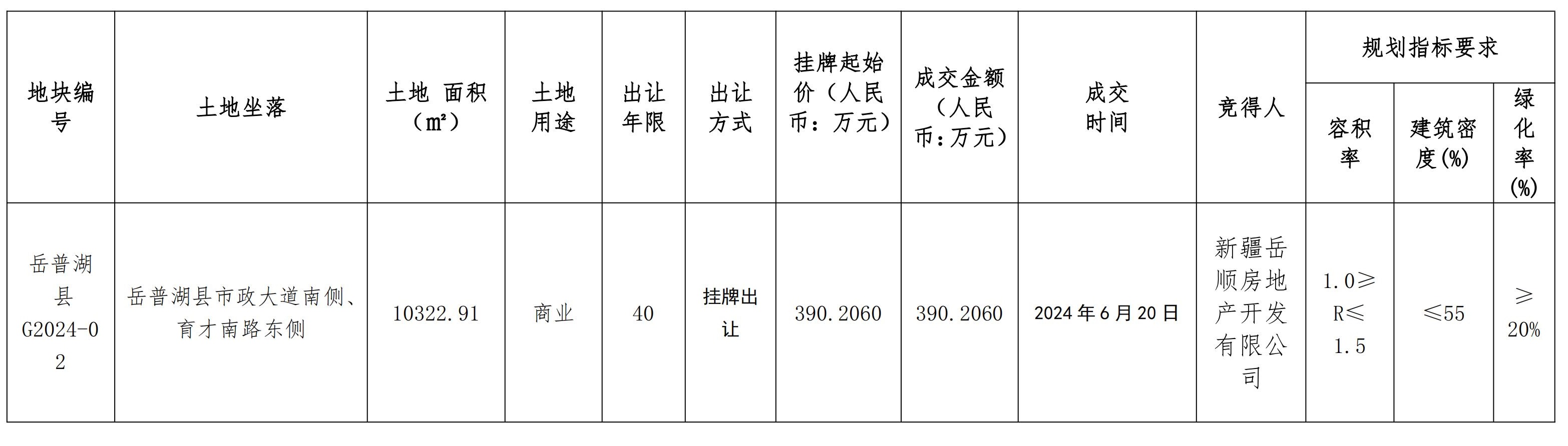 岳普湖縣國有建設(shè)用地使用權(quán)掛牌出讓成交結(jié)果公示