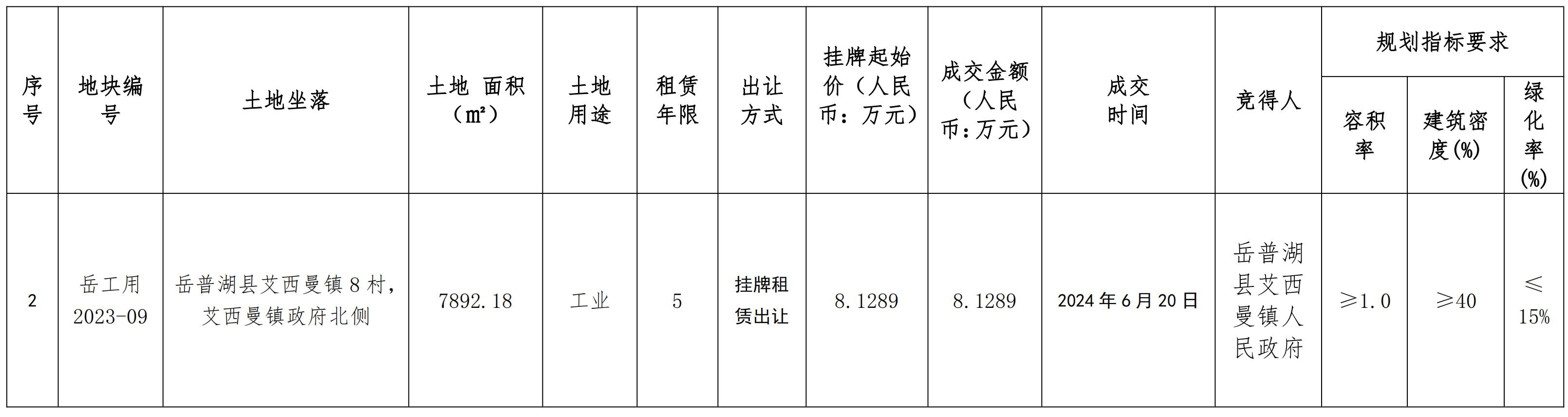 岳普湖縣國有建設用地使用權掛牌出讓成交結果公示