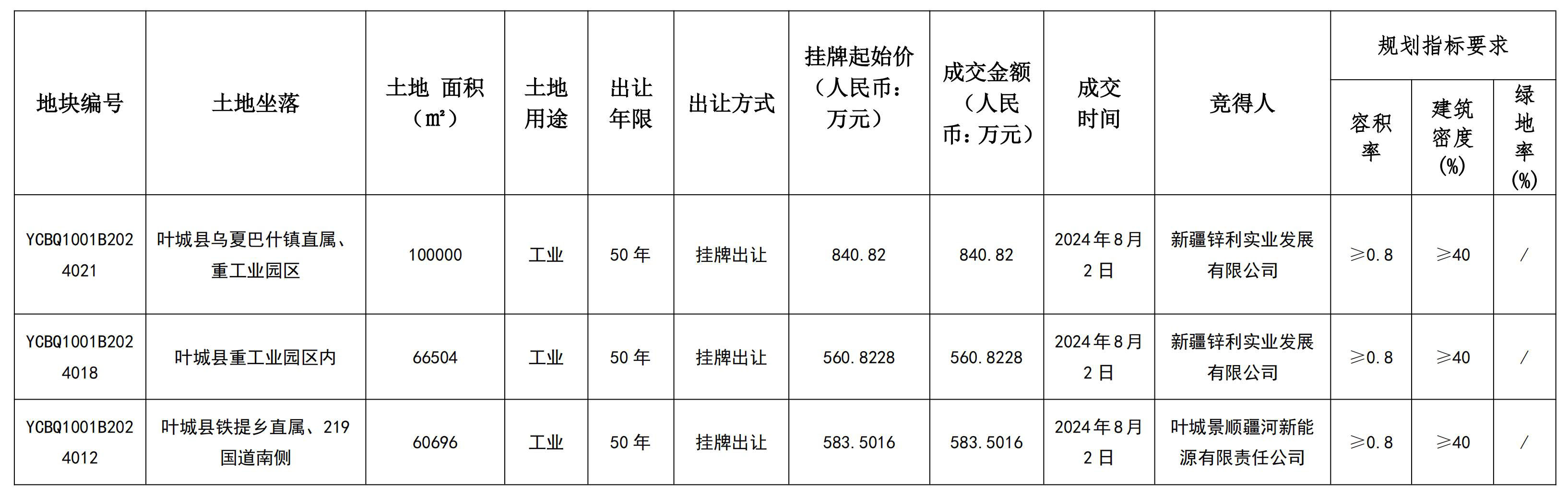 葉城縣自然資源局國有建設用地使用權掛牌出讓成交結果公示