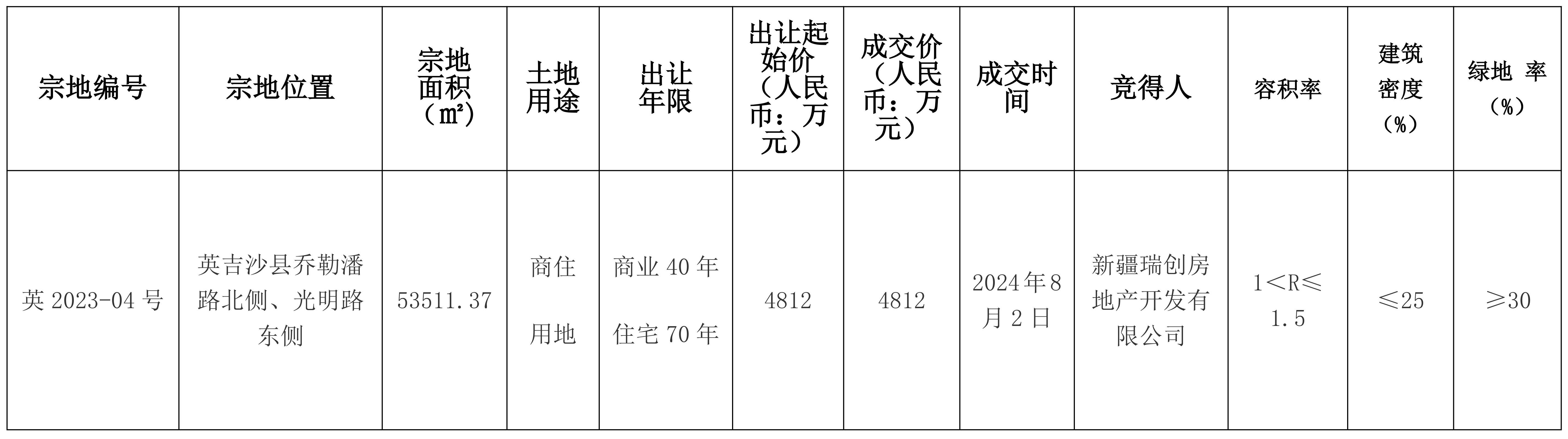 英吉沙縣自然資源局國有建設(shè)用地使用權(quán)成交結(jié)果公示