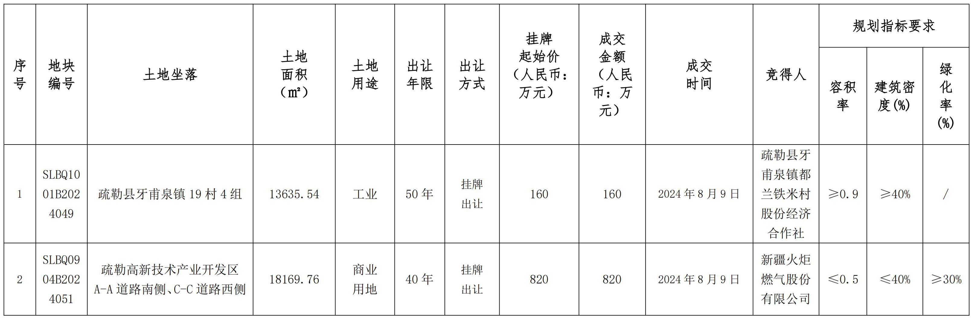 疏勒縣國有建設(shè)用地使用權(quán)掛牌出讓成交結(jié)果公示