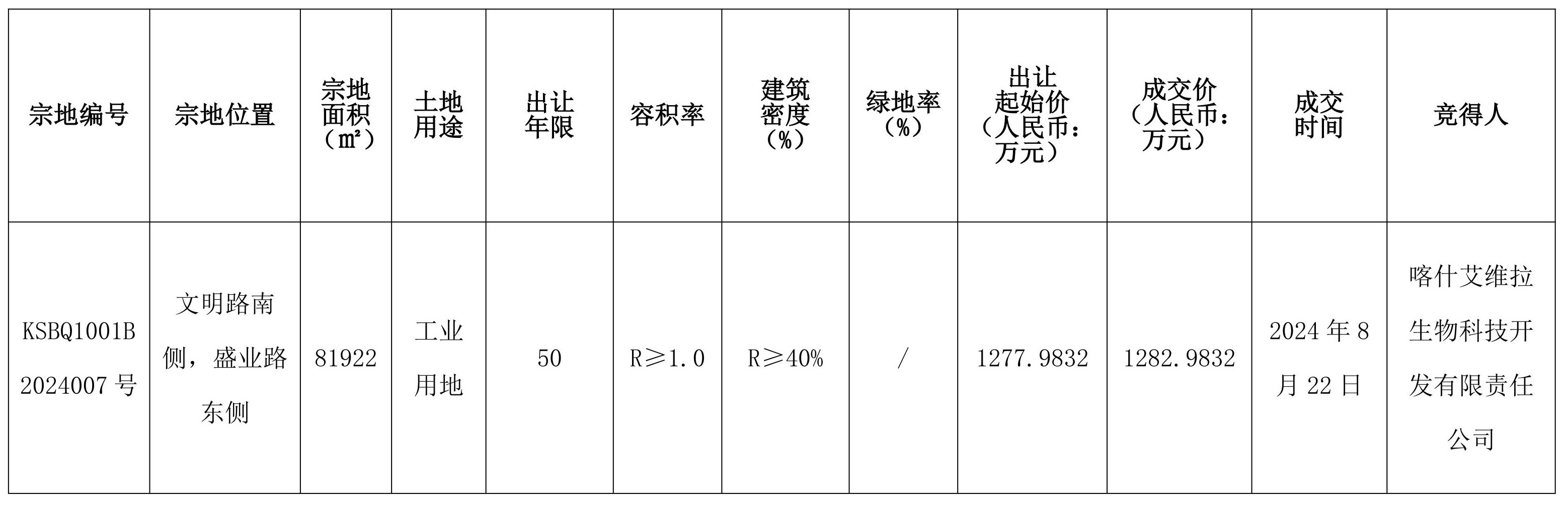 (喀市自然成交公示字[2024]12號)