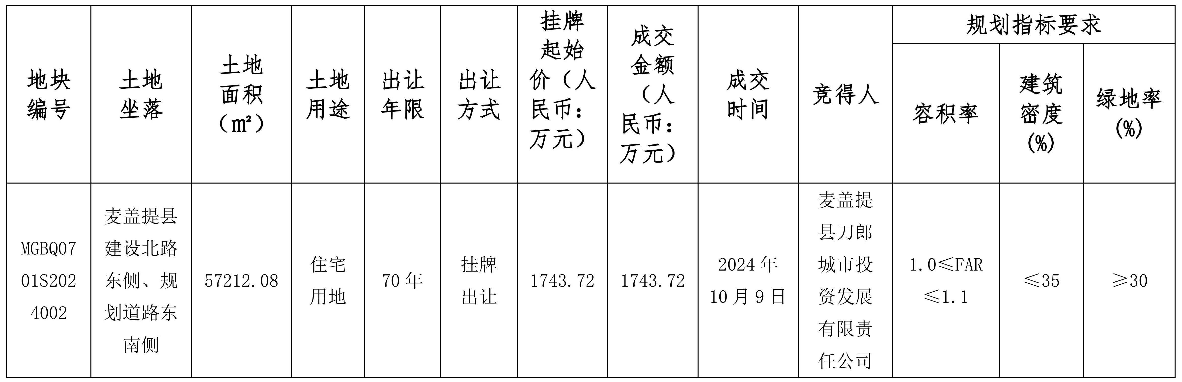 根據(jù)《中華人民共和國(guó)土地管理法》《招標(biāo)拍賣掛牌出讓國(guó)有建設(shè)用地使用權(quán)規(guī)定》(國(guó)土資源部令第39號(hào))《自治區(qū)深化公共資源交易平臺(tái)整合共享工作方案〉的通知》(新政辦函〔2019〕250號(hào))等有關(guān)法律法規(guī)及文件的規(guī)定,麥蓋提縣自然資源局以掛牌方式出讓1(幅)地塊的國(guó)有建設(shè)用地使用權(quán),現(xiàn)將出讓成交結(jié)果公示如下: