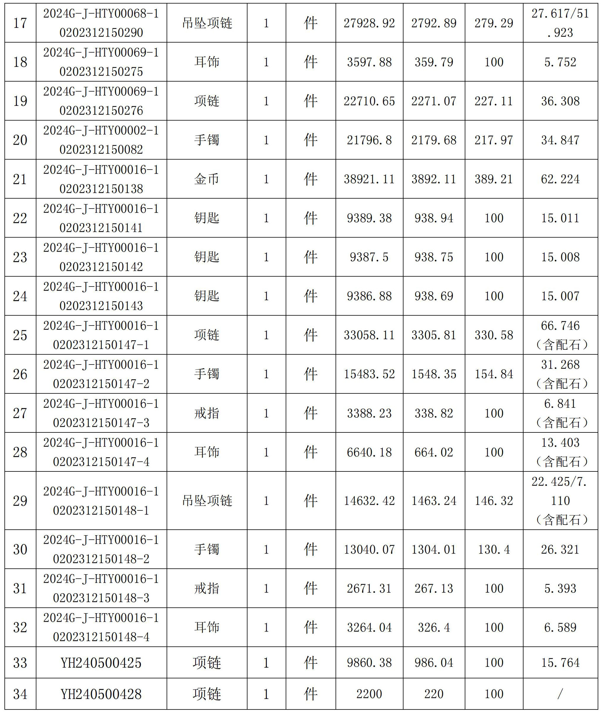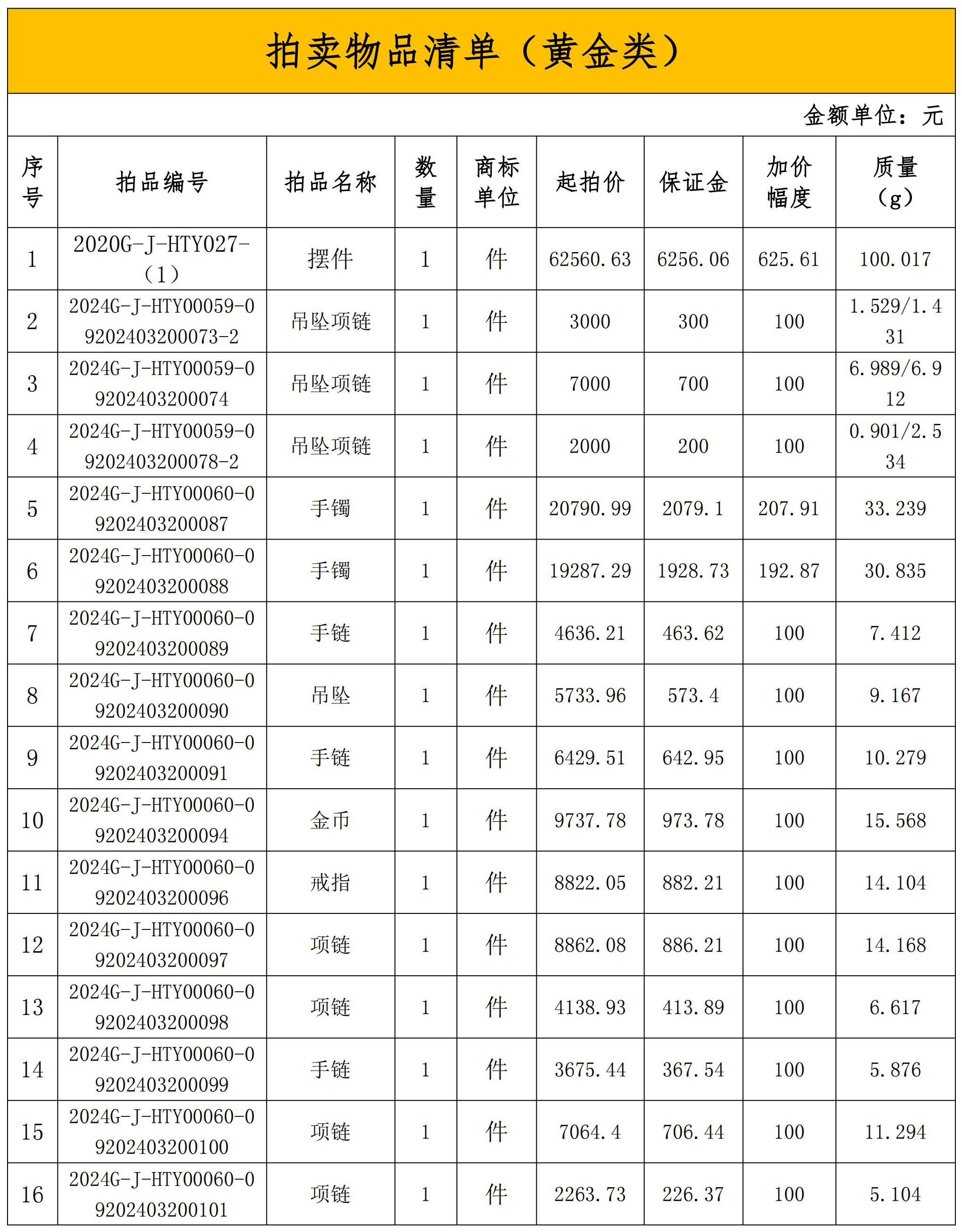 一、拍賣標(biāo)的:一批黃金首飾(詳見拍賣目錄,34件)