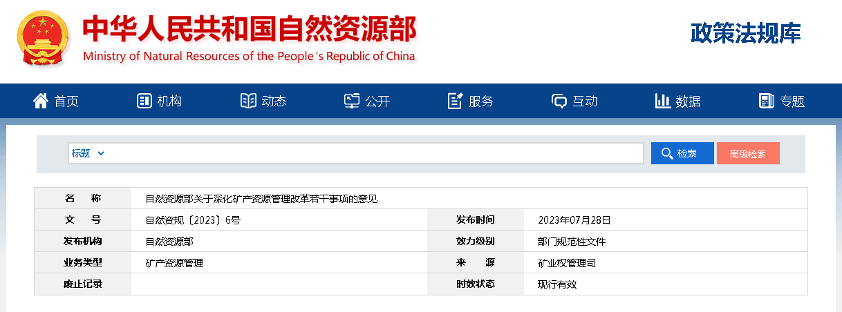 本意見(jiàn)自印發(fā)之日起實(shí)施,有效期五年。《自然資源部關(guān)于推進(jìn)礦產(chǎn)資源管理改革若干事項(xiàng)的意見(jiàn)(試行)》(自然資規(guī)〔2019〕7號(hào))同時(shí)廢止。本意見(jiàn)實(shí)施前已印發(fā)的其他文件與本意見(jiàn)規(guī)定不一致的,按照本意見(jiàn)執(zhí)行。