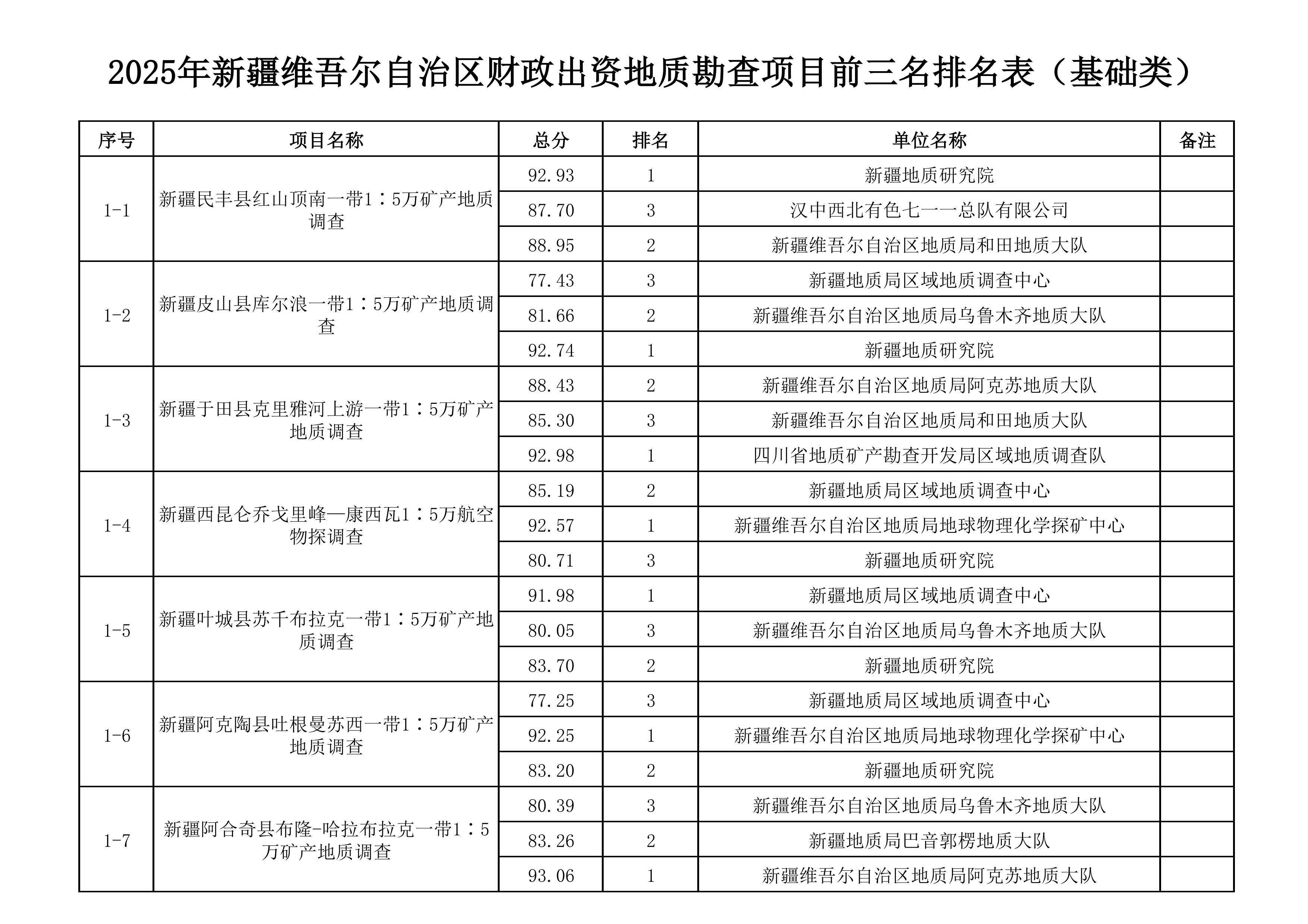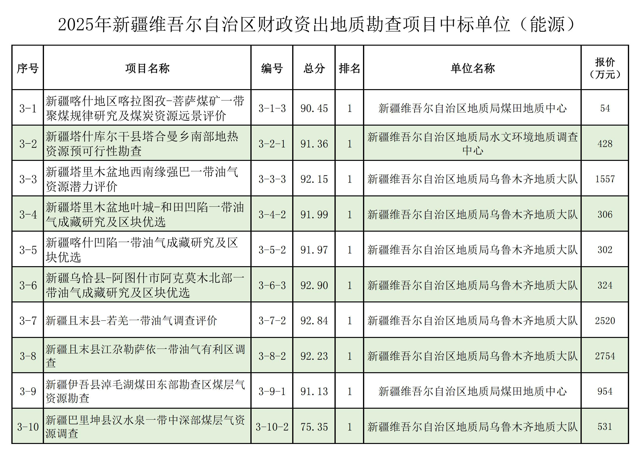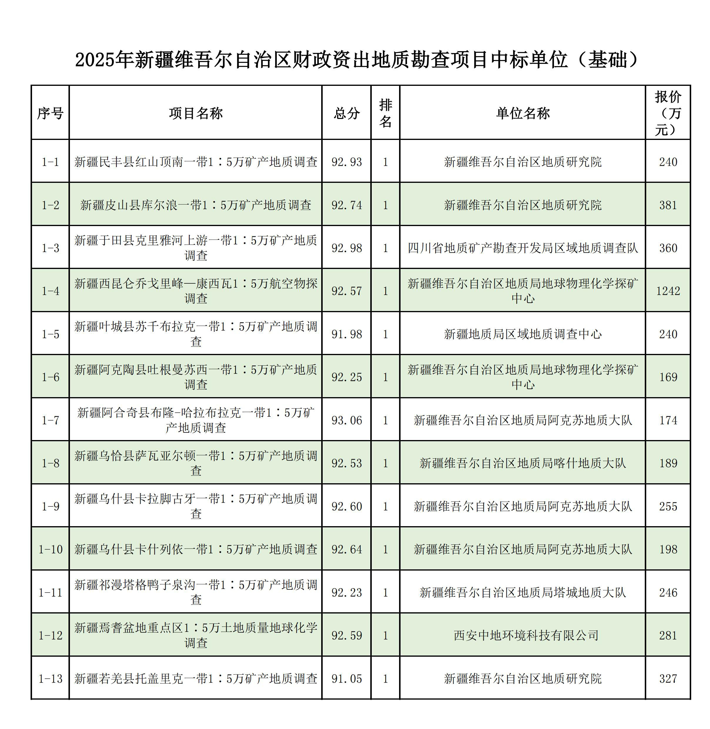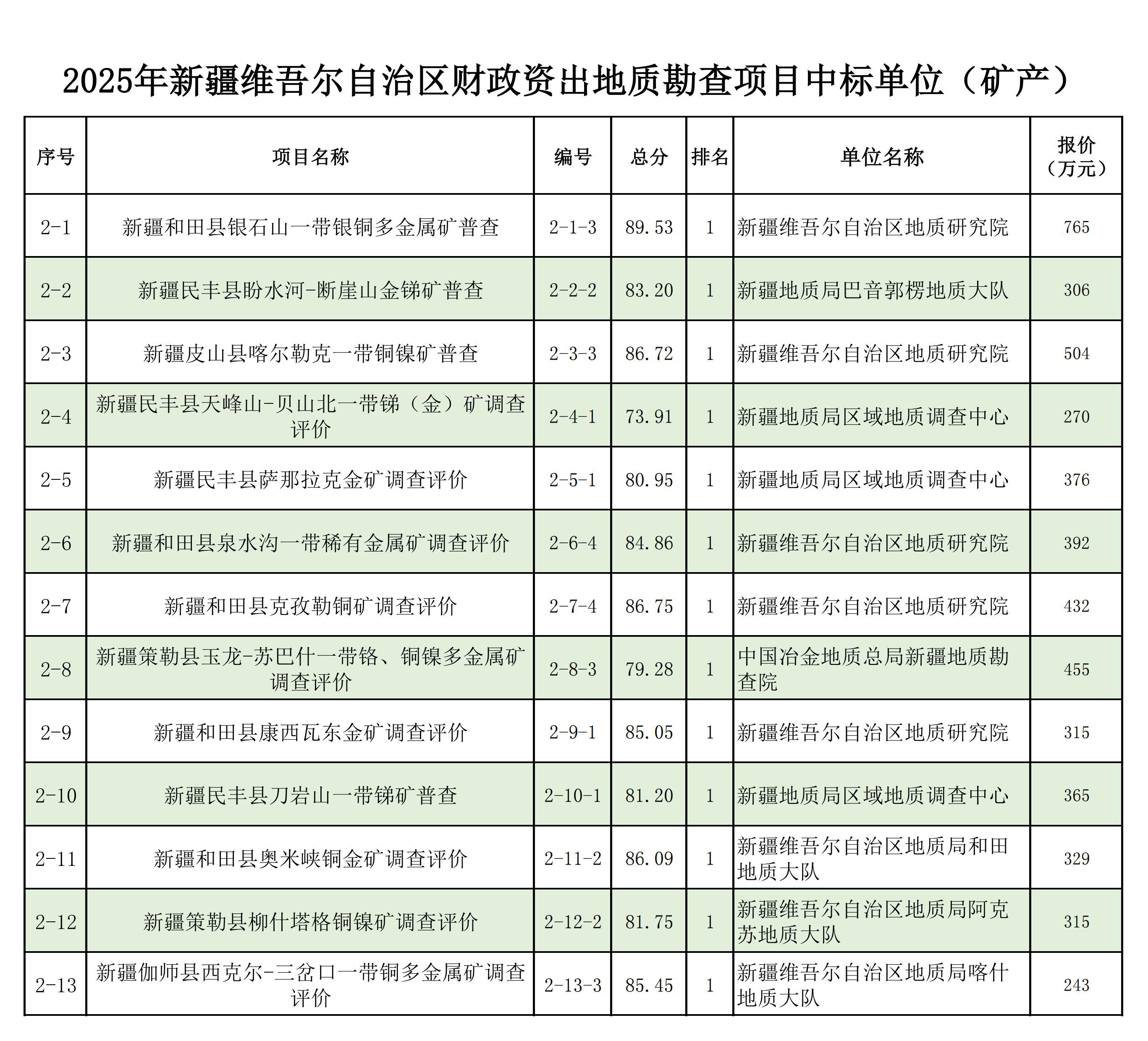 1.2025年新疆維吾爾自治區(qū)財(cái)政出資地質(zhì)勘查項(xiàng)目中標(biāo)單位一覽表