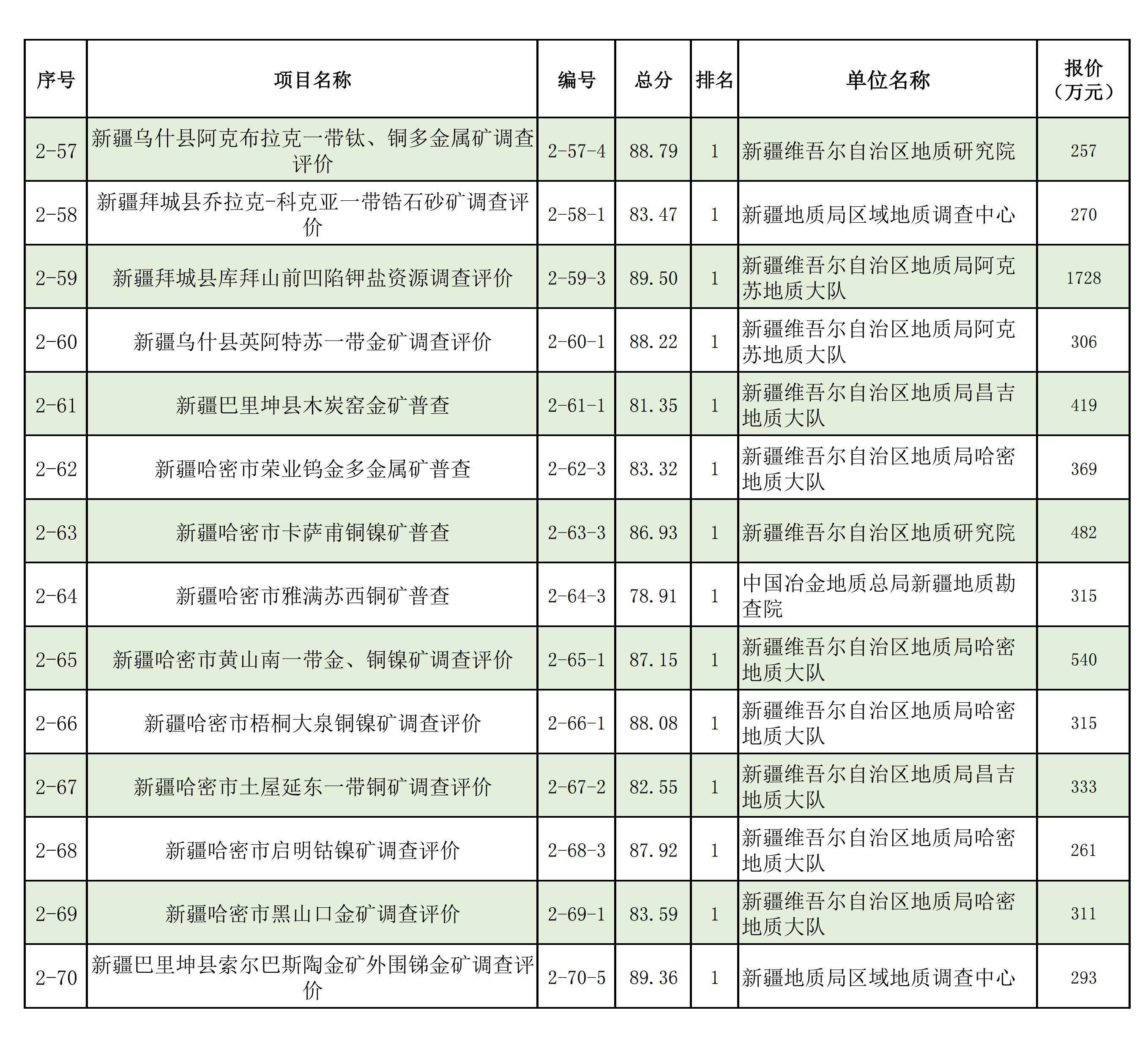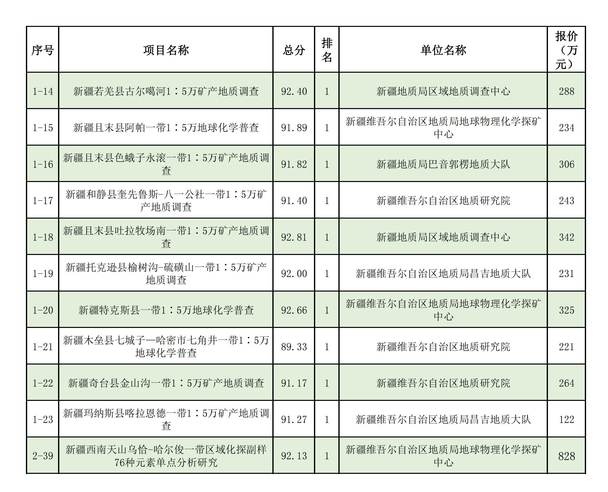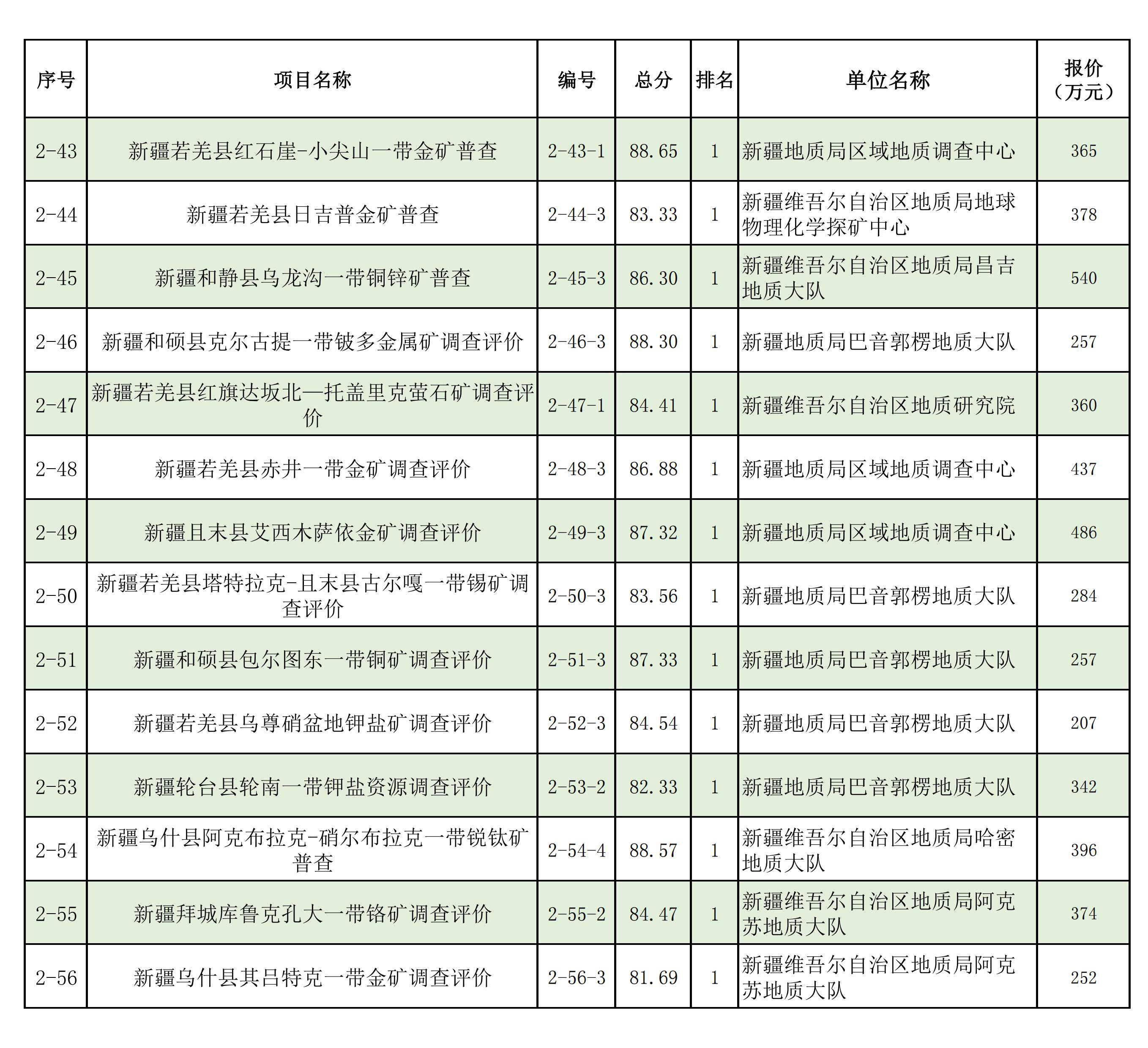 1.2025年新疆維吾爾自治區(qū)財(cái)政出資地質(zhì)勘查項(xiàng)目中標(biāo)單位一覽表