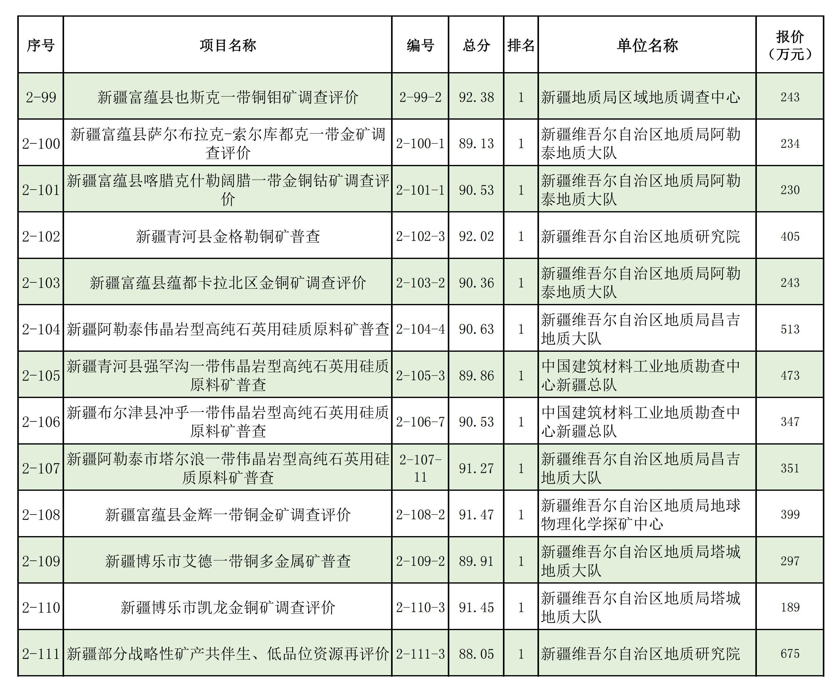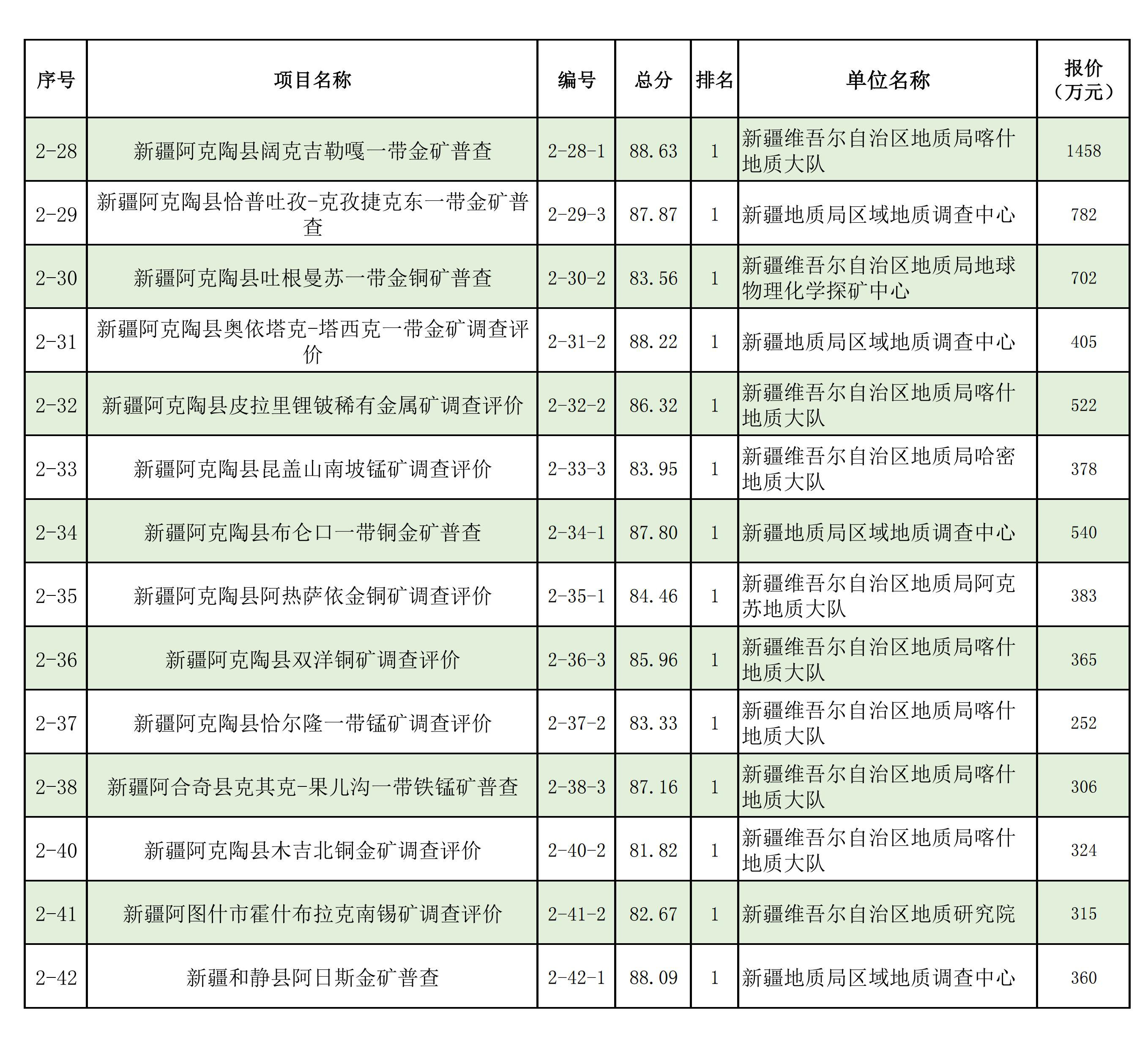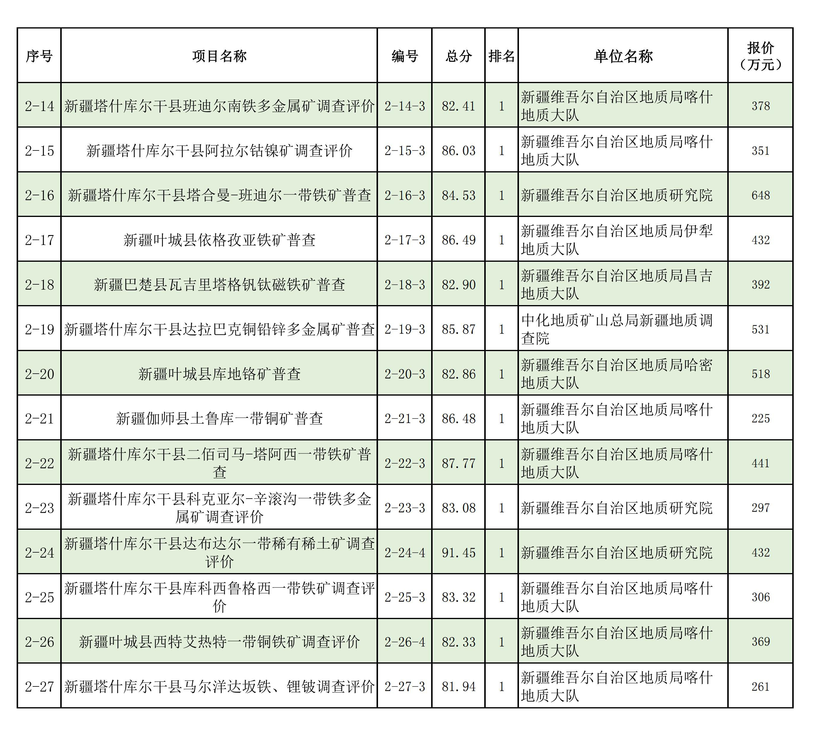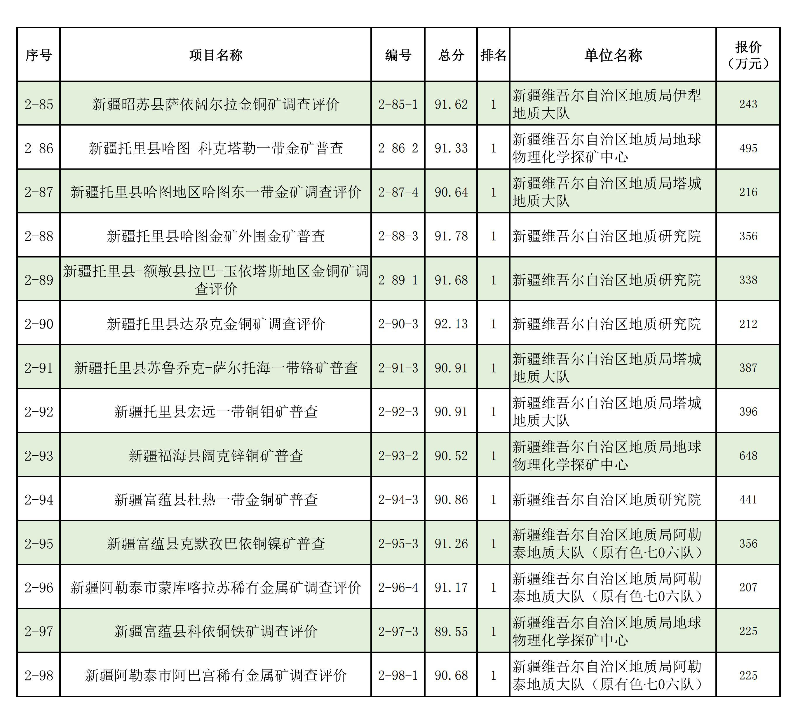 1.2025年新疆維吾爾自治區(qū)財(cái)政出資地質(zhì)勘查項(xiàng)目中標(biāo)單位一覽表