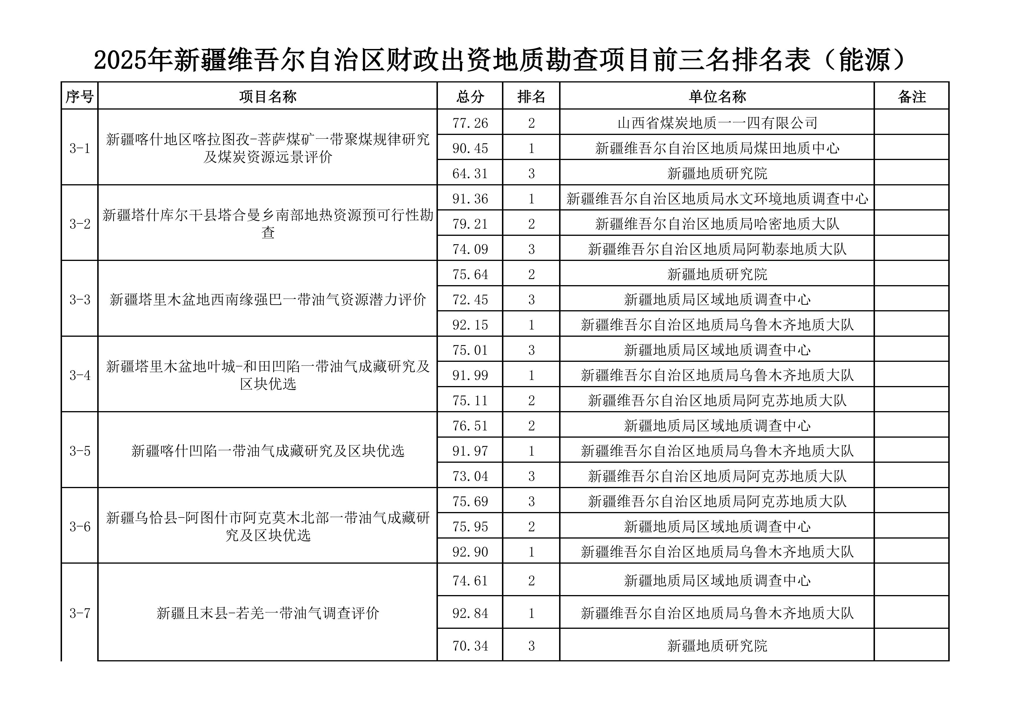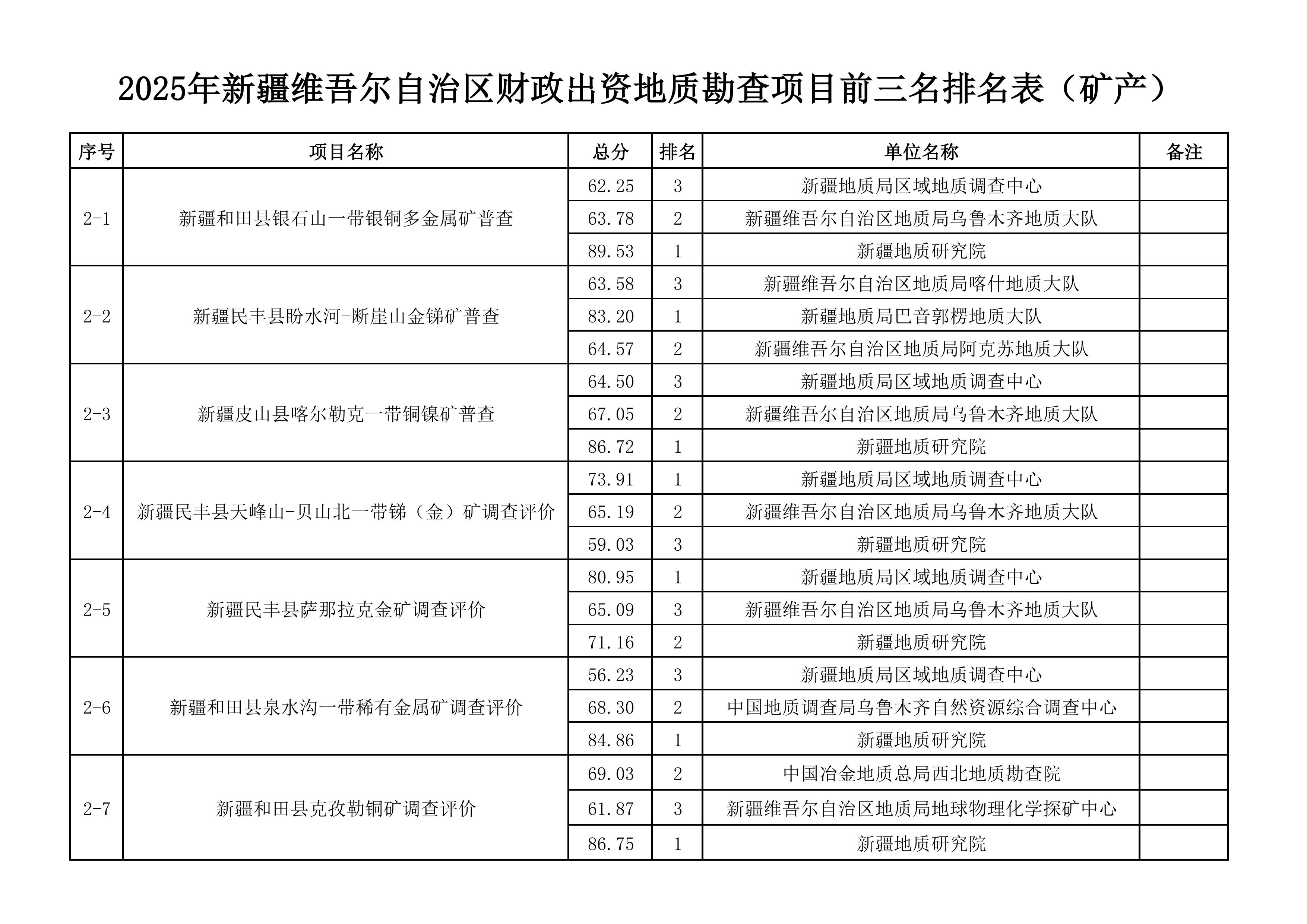 2.2025年新疆維吾爾自治區(qū)財(cái)政出資地質(zhì)勘查項(xiàng)目前三名一覽表