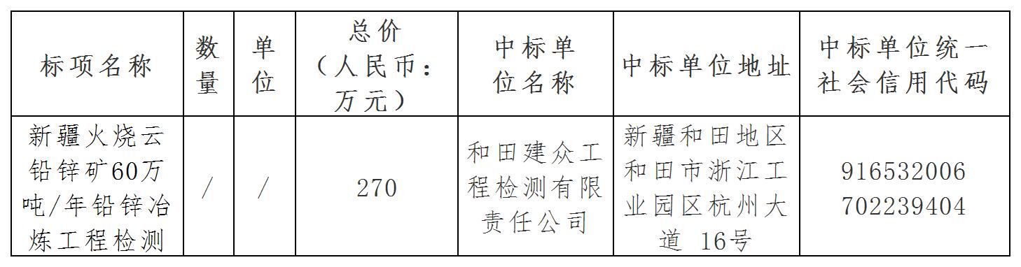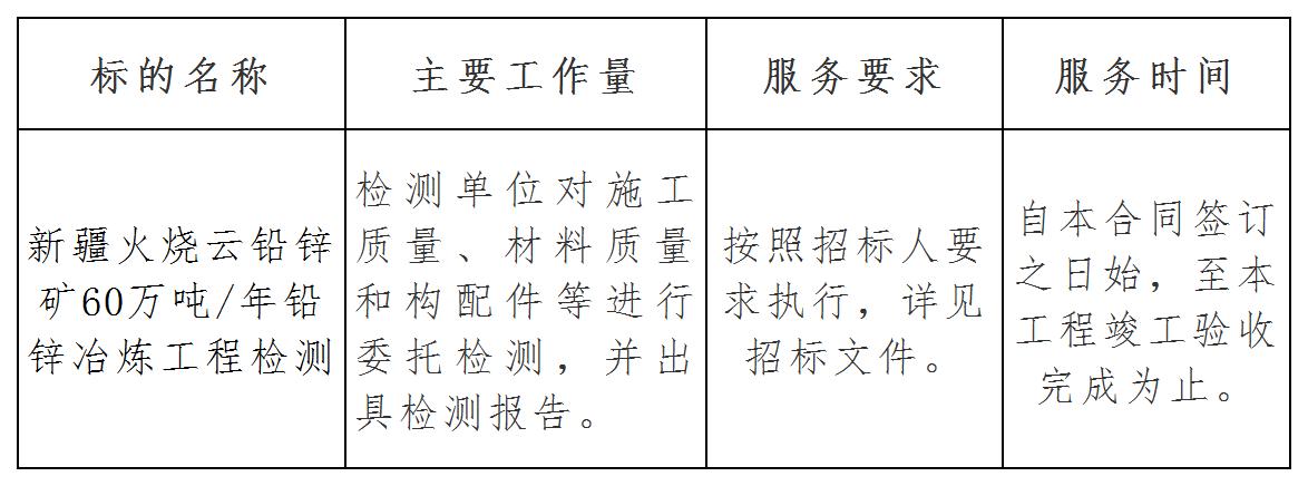 二、項(xiàng)目名稱:新疆火燒云鉛鋅礦60萬噸/年鉛鋅冶煉工程檢測(cè)