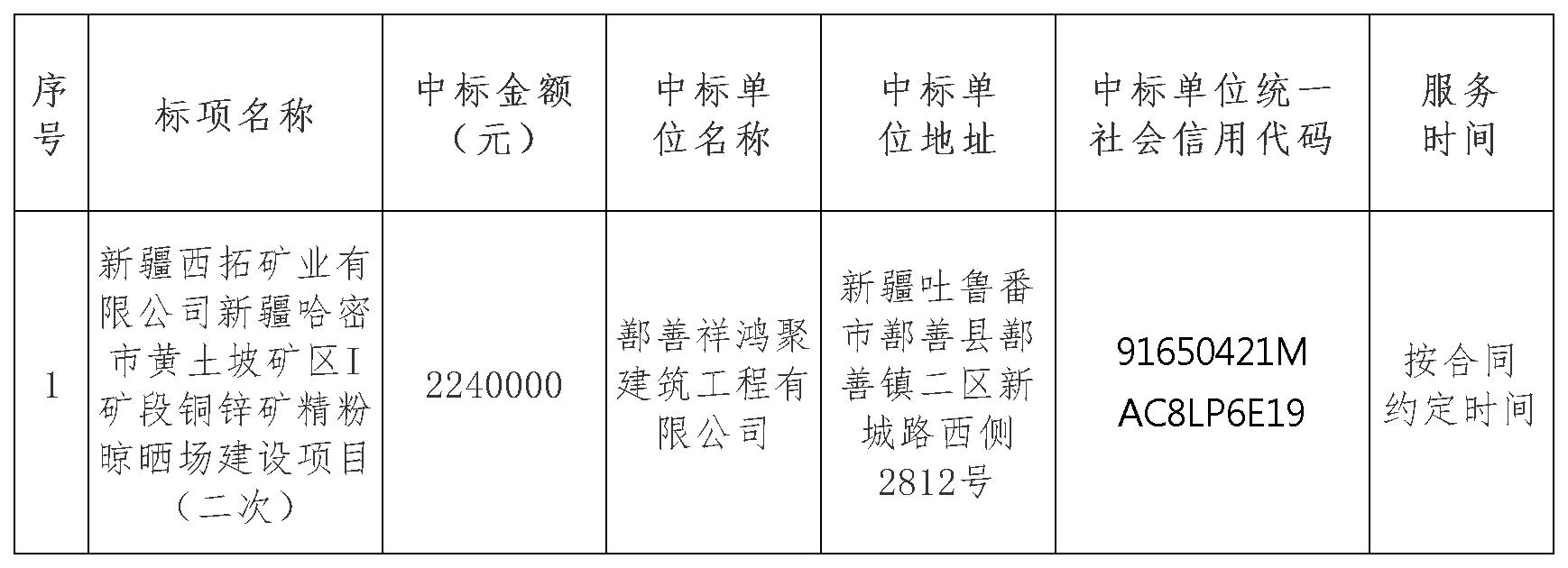 二、項(xiàng)目名稱(chēng):新疆西拓礦業(yè)有限公司新疆哈密市黃土坡礦區(qū)I礦段銅鋅礦精粉晾曬場(chǎng)建設(shè)項(xiàng)目(二次)