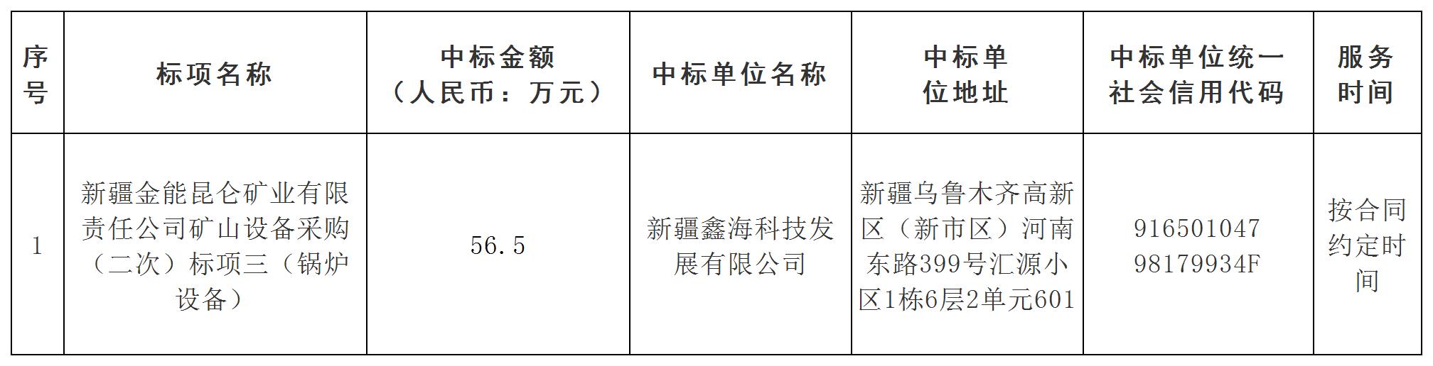 二、項(xiàng)目名稱:新疆金能昆侖礦業(yè)有限責(zé)任公司礦山設(shè)備采購項(xiàng)目(二次)
